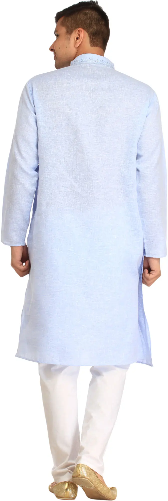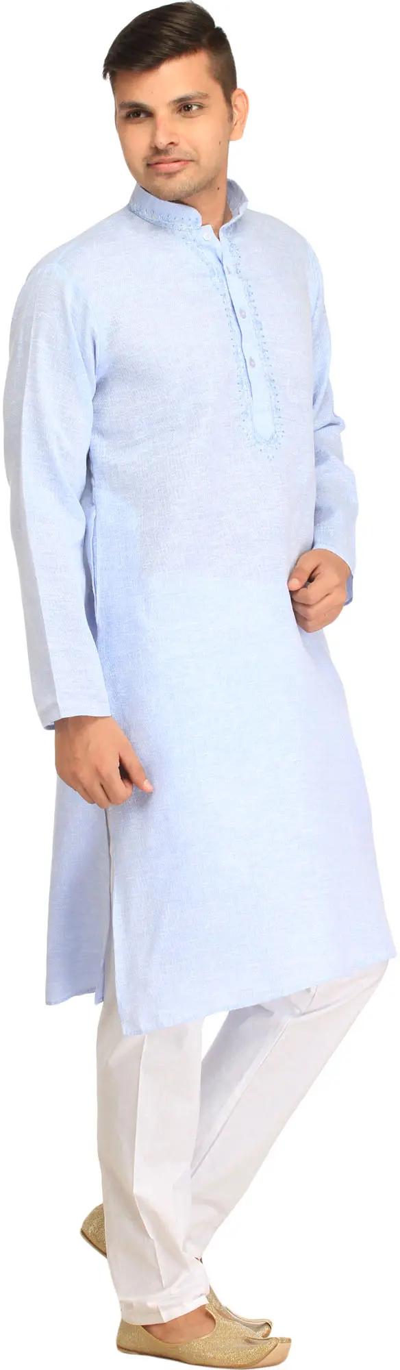 Discover the perfect blend of traditional charm and modern comfort with this exquisite kurta pajama set. Crafted from pure, breathable cotton, this ensemble promises a soft feel against your skin, making it an ideal choice for everyday wear, casual gatherings, or festive occasions. The light blue hue exudes a sense of calm and sophistication, while the relaxed fit ensures ease of movement throughout your day.