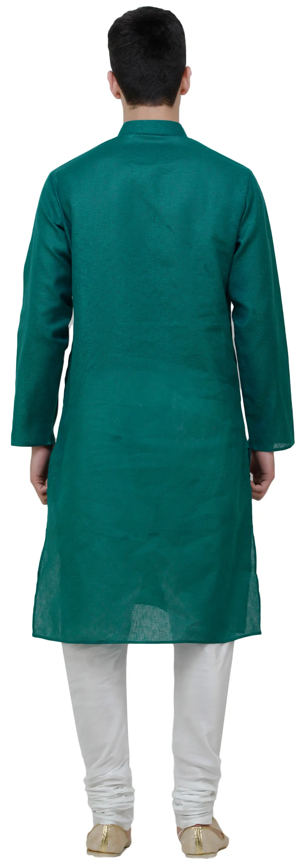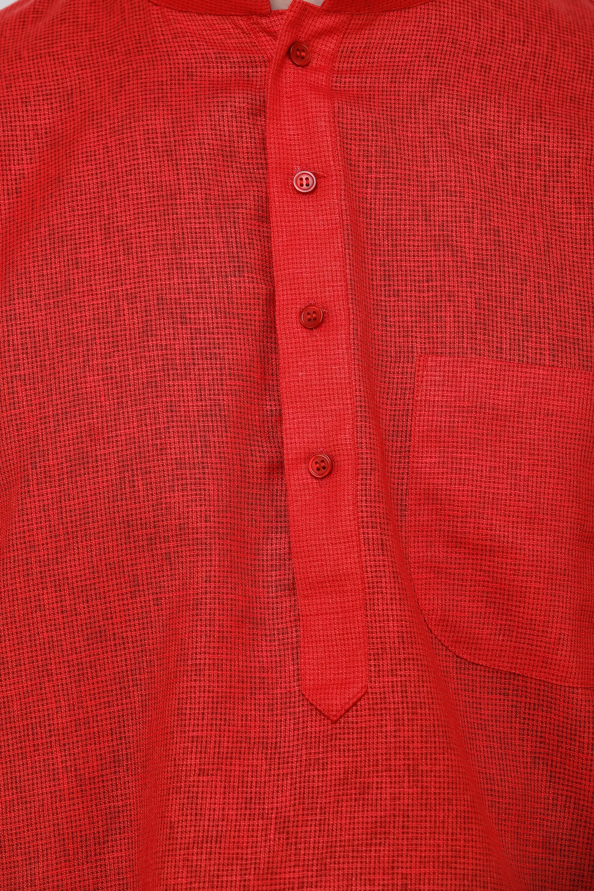 The beauty of this kurta lies in its intricate weave. Unlike bold patterns, this design features "zero checks" woven directly into the fabric, creating a subtle yet captivating texture. This meticulous detailing adds depth and visual interest without overwhelming the garment's classic silhouette. The rich, solid hue is further enhanced by this unique weave, offering a sophisticated look that is both versatile and undeniably stylish. The placket features a row of classic buttons, adding a touch of refined detail that complements the overall design.