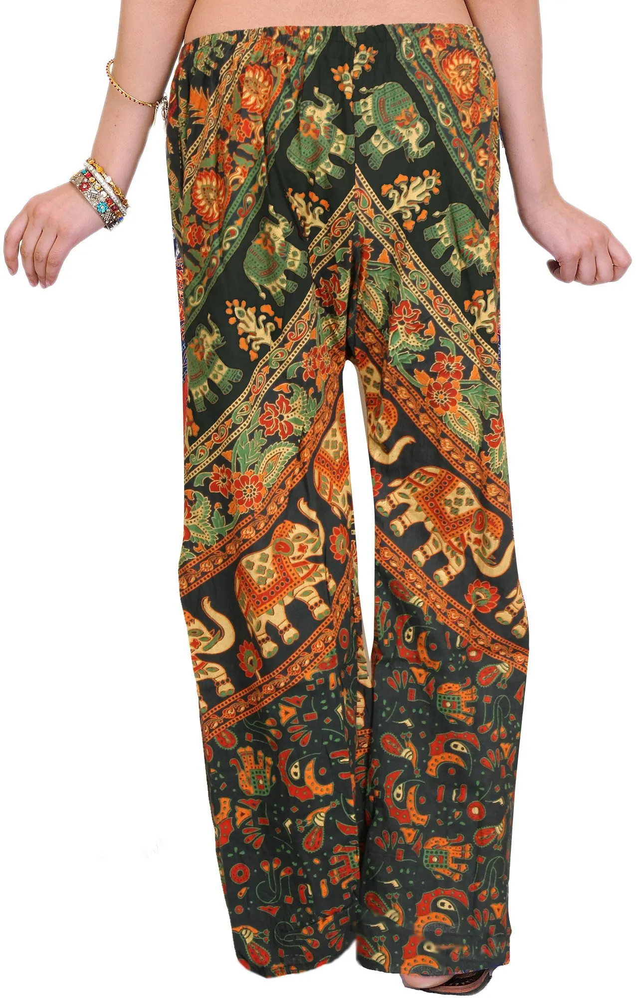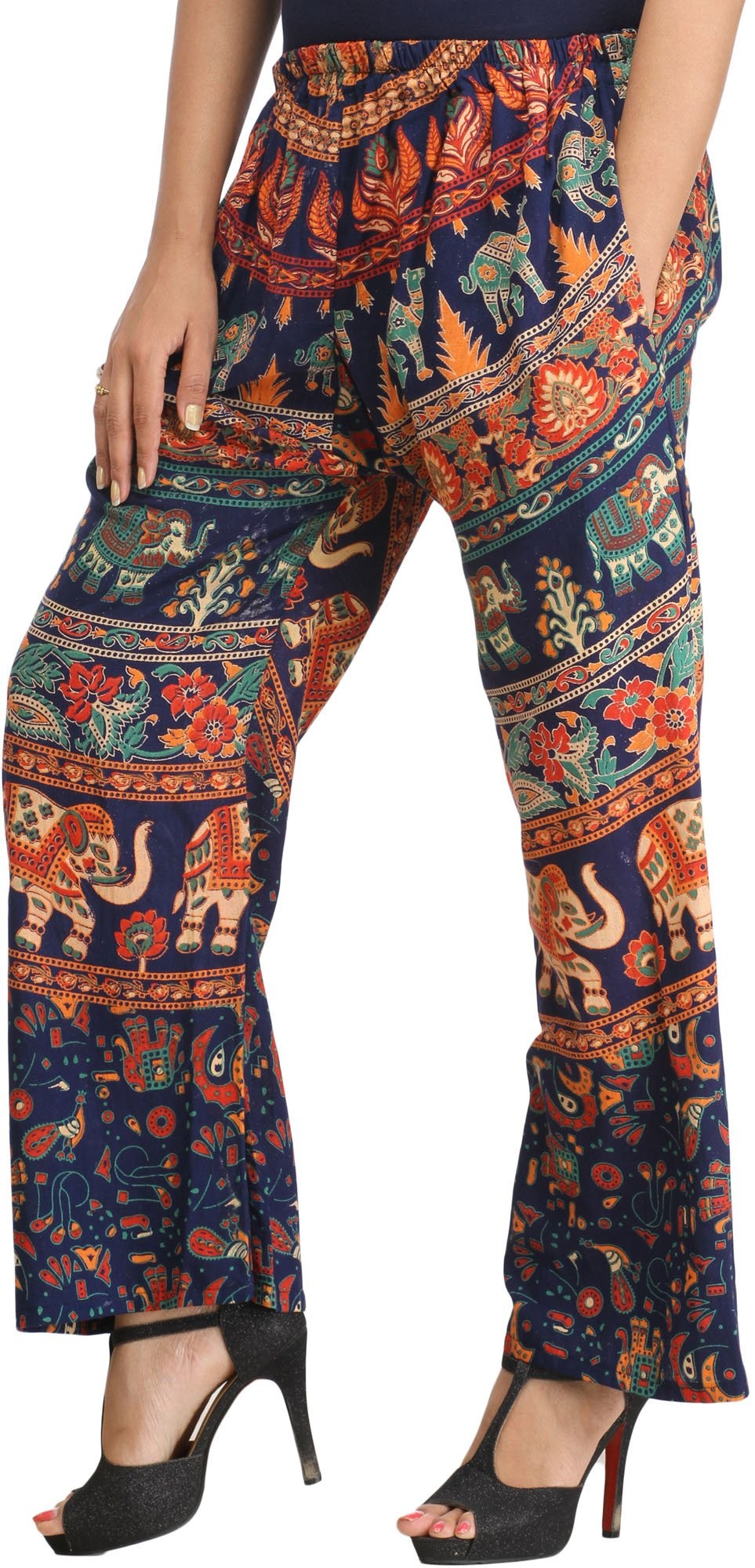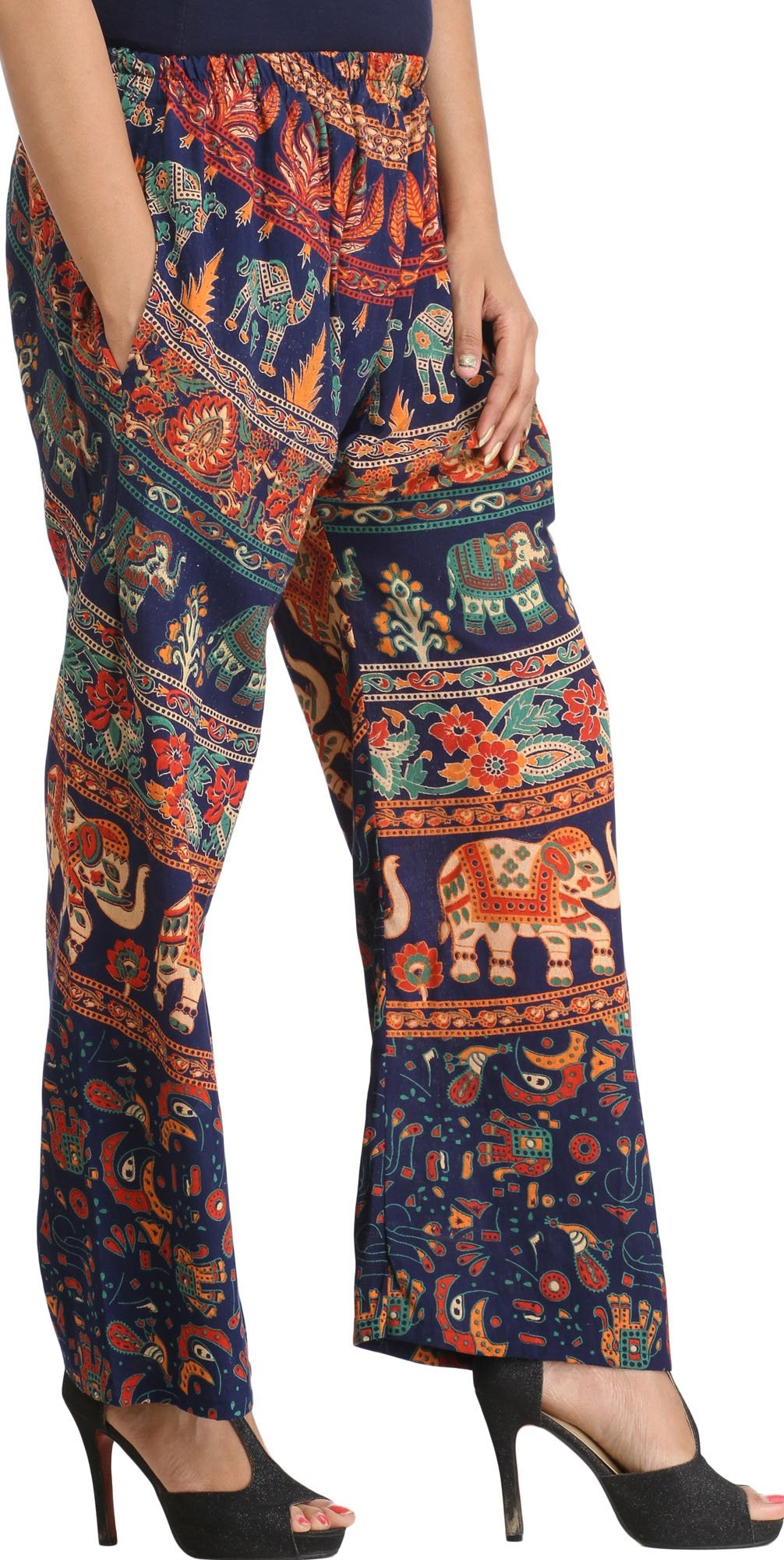With its striking motifs, this casual Trouser from Pilkhuwa embodies luxury and comfort. This pant is made from pure cotton and coloured with natural vegetable dyes, making it the epitome of eco-conscious design. Enjoy the comforting sensation of a breathable cloth against your skin, which allows you to move freely with each step. Symbolizing grace and wisdom, the printed elephants add a touch of whimsy to your ensemble, inviting admiration and conversation. This outfit seamlessly integrates efficiency with cultural charm.