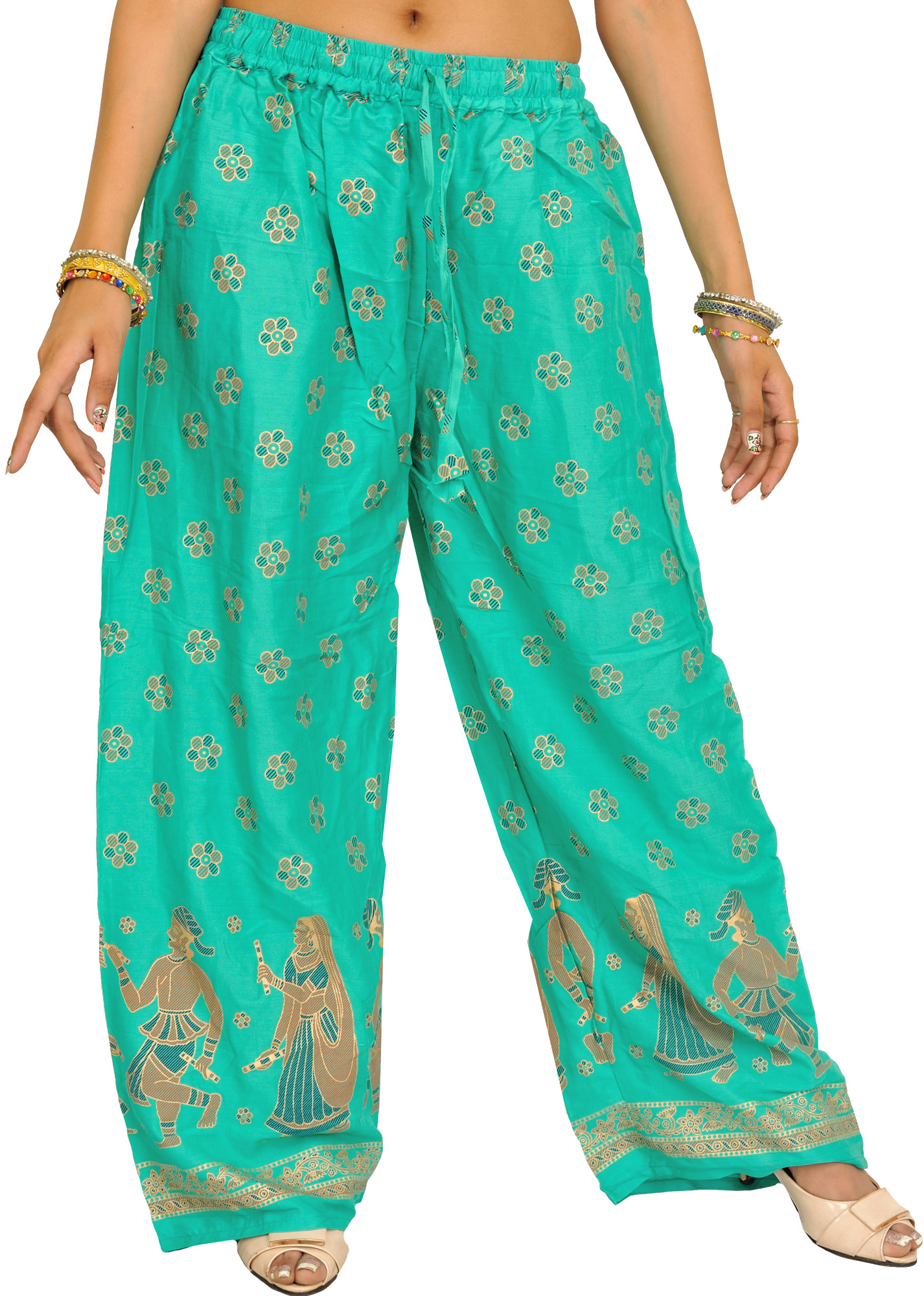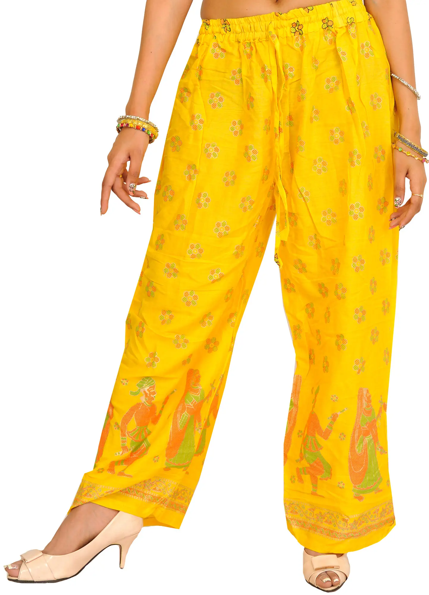 With this “Yoga Trouser,” a harmony of beauty and style, you may enter a realm where luxury and ease merge. It drapes effortlessly and embraces your body with each movement, thanks to its luscious rayon fabric. It portrays a narrative of harmony and fluidity, with printed dancing couples entwined in beautiful floral themes, symbolising unity and vitality, whispering tales of joy and celebration, and infusing every step with grace and charm. It provides unsurpassed comfort and freedom of movement during yoga sessions, leisurely strolls, and social engagements.