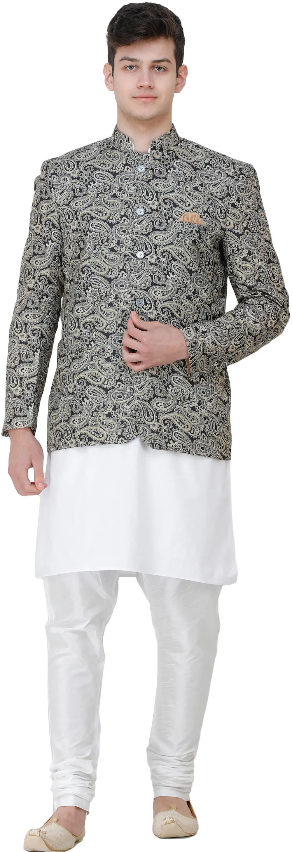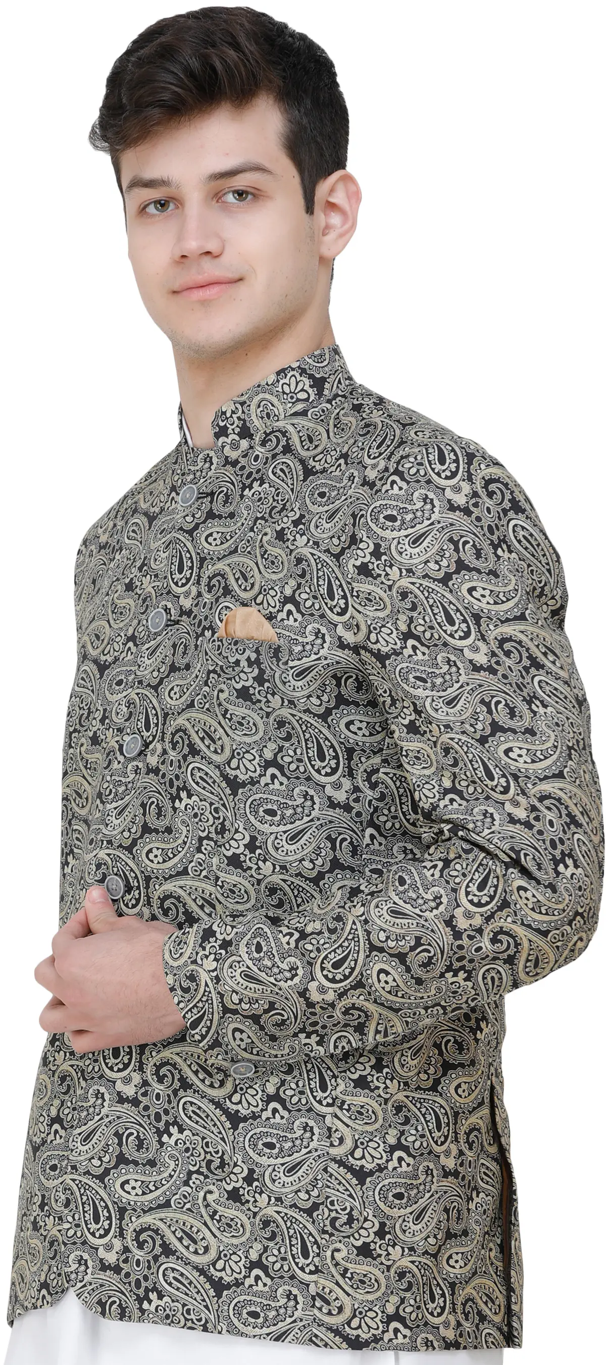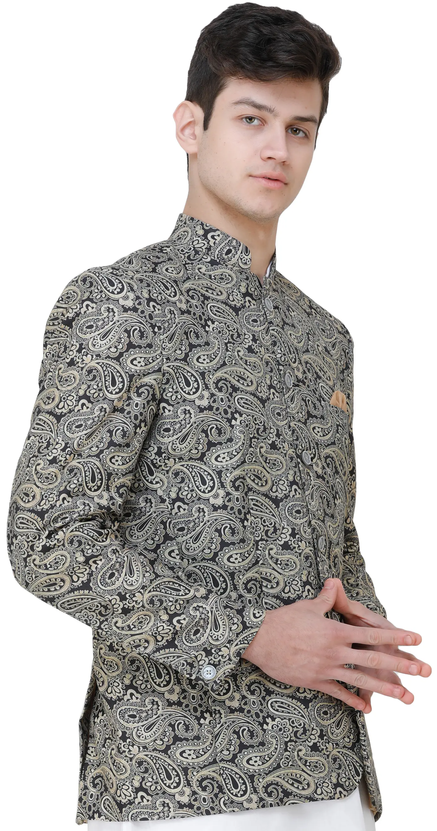 Step into style with the Caviar-Black Blazer adorned with Printed Paisleys. This sleek blazer is a perfect blend of sophistication and contemporary charm. The caviar-black color exudes a timeless elegance, while the intricate paisley prints add a touch of artistic flair. Ideal for formal occasions or evening gatherings, this blazer allows you to make a bold fashion statement. Pair it with tailored trousers or jeans for a versatile look that transitions seamlessly from day to night. Elevate your wardrobe with this eye-catching piece, showcasing a perfect harmony of classic and modern design elements.
