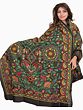 Dark-Green Sari from Kolkata with Kantha Embroidery by Hand