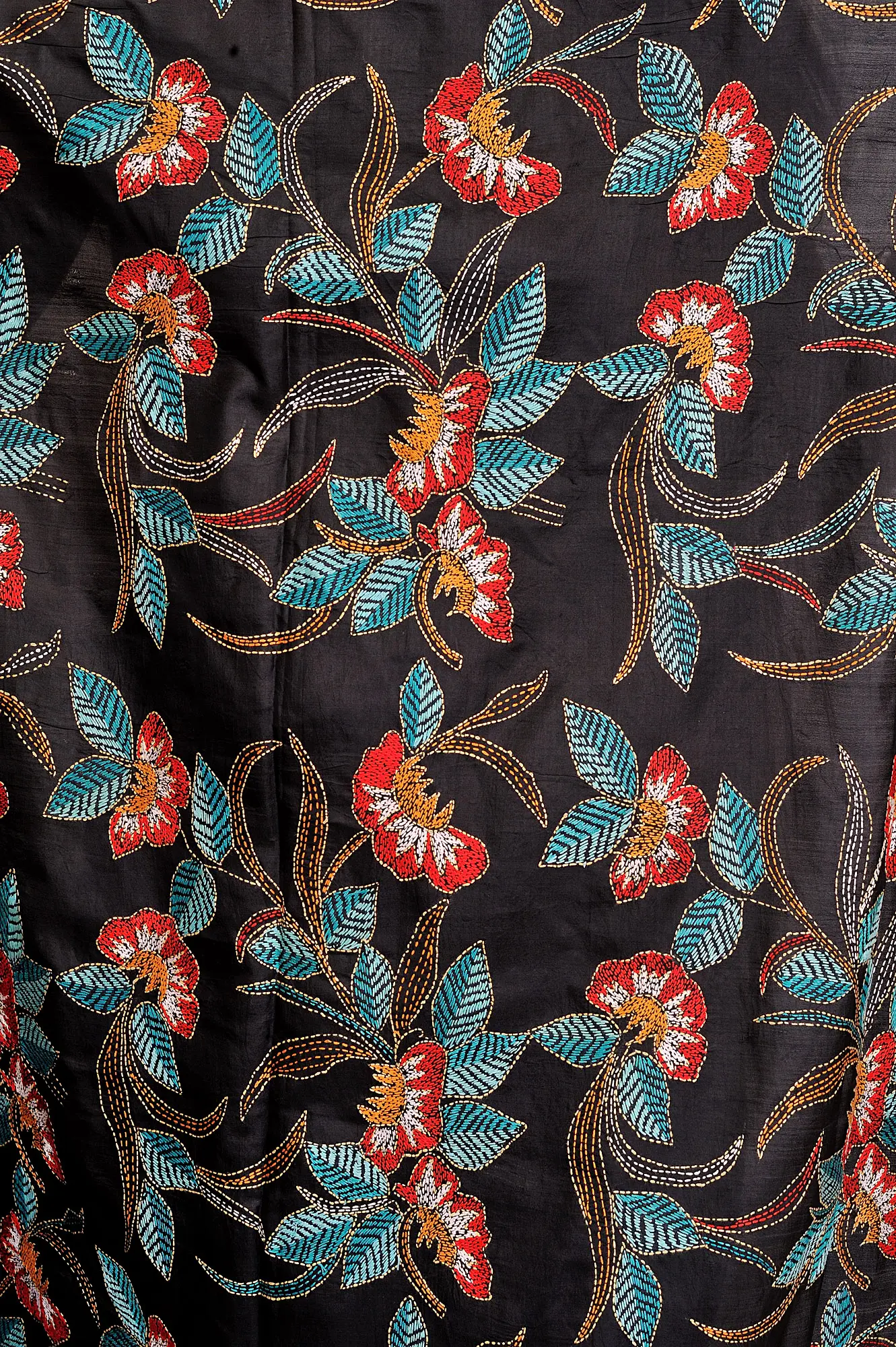 Multi-Color Patchwork Reversible Shawl from Kolkata with Kantha Stitch Embroidery All-Over