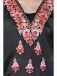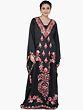 Black Pure Wool Kaftan with Multicolor Aari Embroidered Flowers