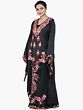 Caviar-Black Digital Floral Printed Kaftan from Kashmir with Aari-Embroidery on Neck