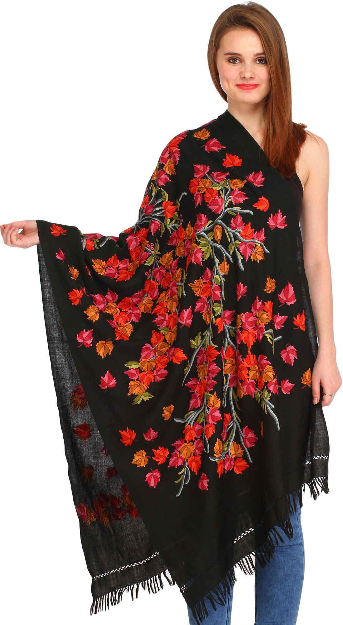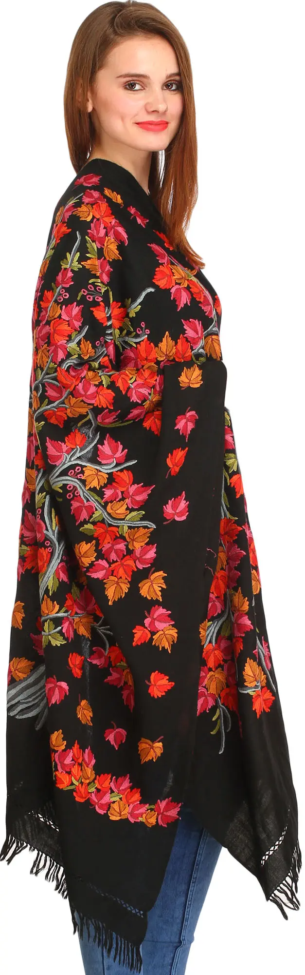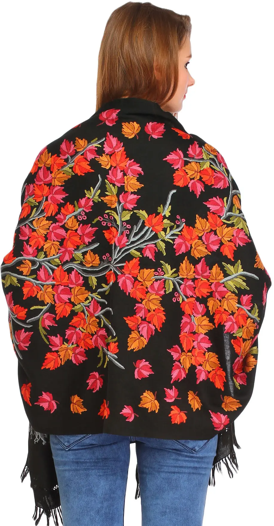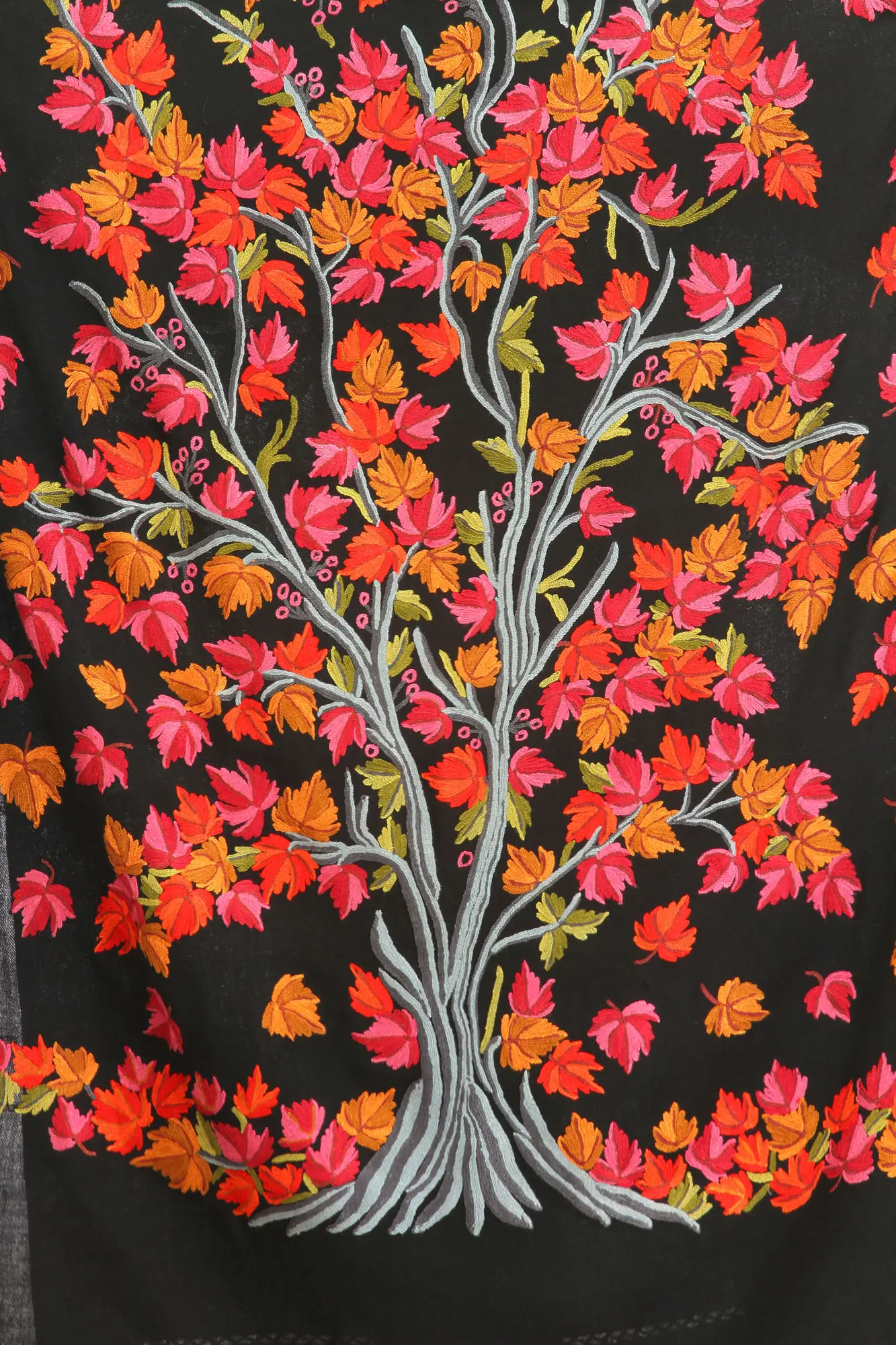 Pure Wool Stole with Aari Hand Embroidered Maple Tree from Kashmir