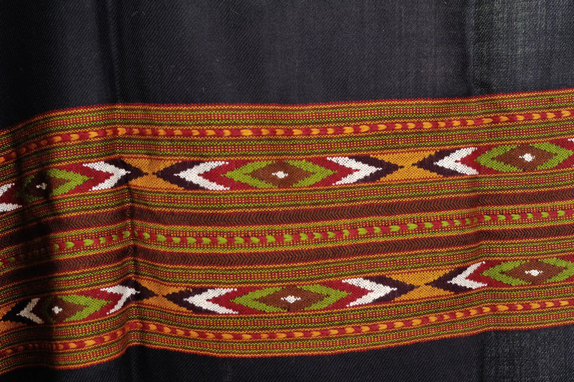White and Black Stole From Kullu with Woven Checks and Kinnauri Border