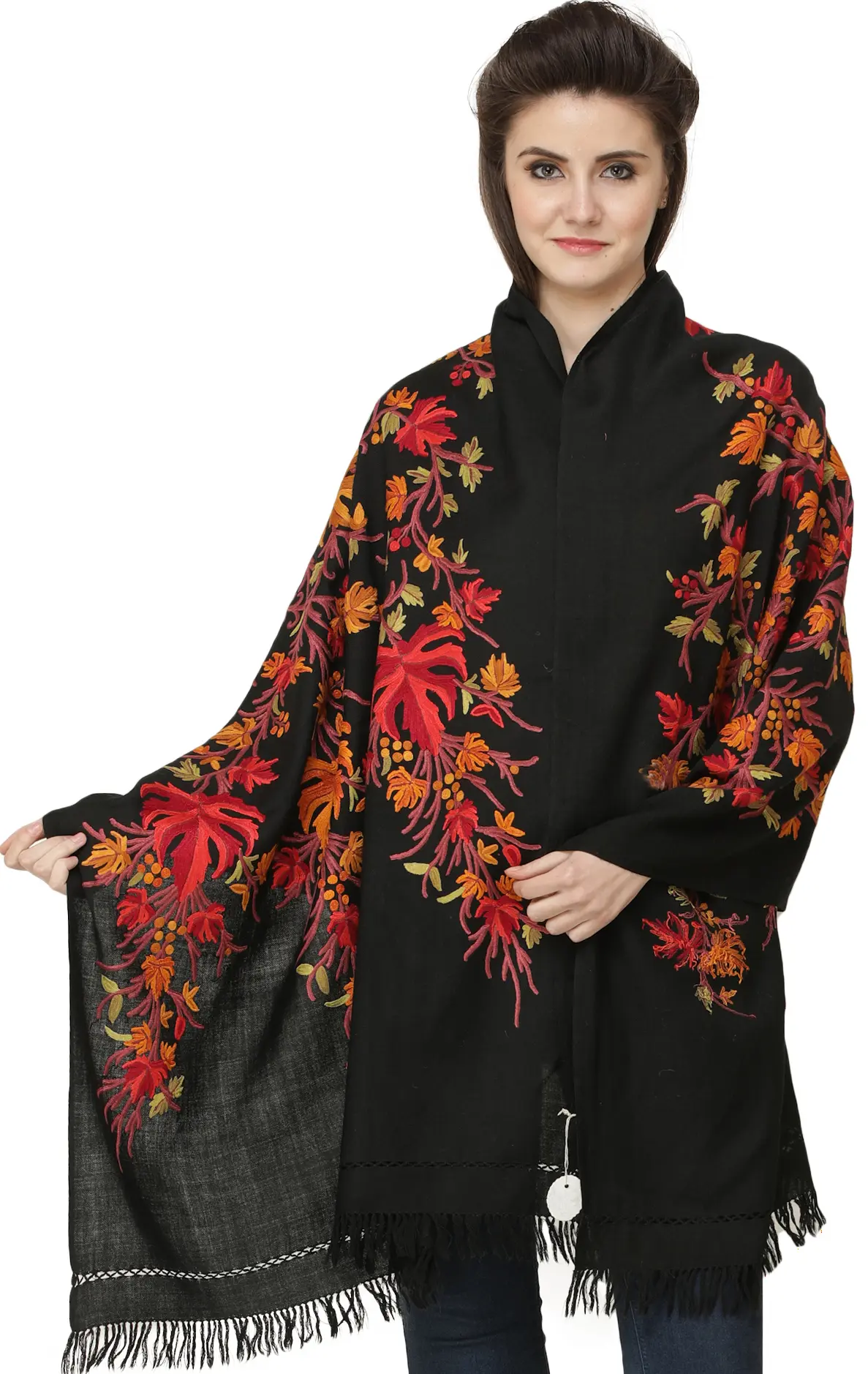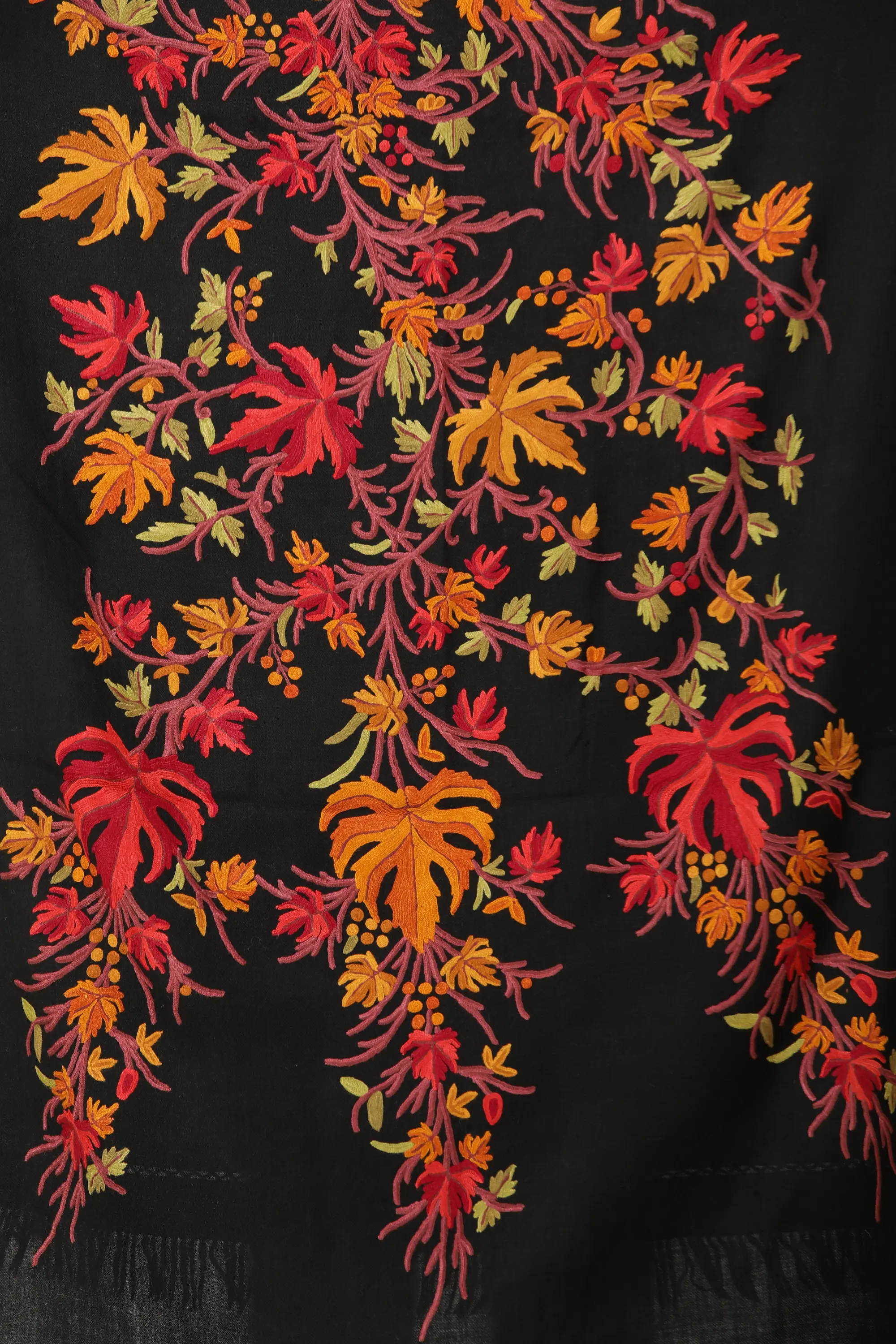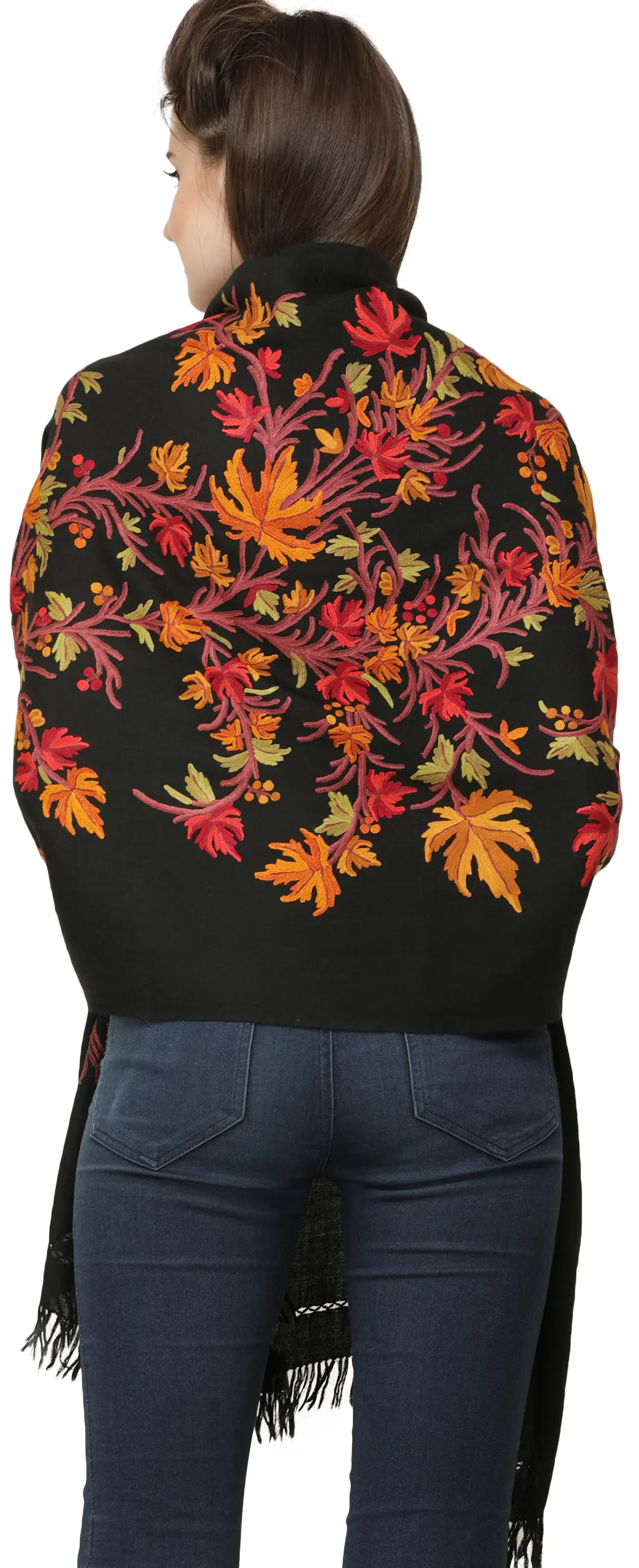 The motifs in question are quintessentially Kashmiri. Profuse vines breaking into delicate tendrils and chinar (maple) leaves large and small. The maple leaf motif is to Kashmiri textiles what paisleys are to the rest of (traditional) North Indian fashion. Zoom in on the same to appreciate the flawless handiwork, the skill for which is arguably endemic to the Himalayan valley artisans. Also, through the translucence of the fabric, one could make out the high-precision, superbly uniform weave of the fabric.