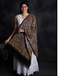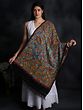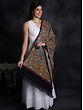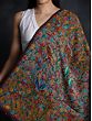 Moonless-Night Pure Wool Stole from Srinagar with Birds and Flowers Aari Embroidery by Hand