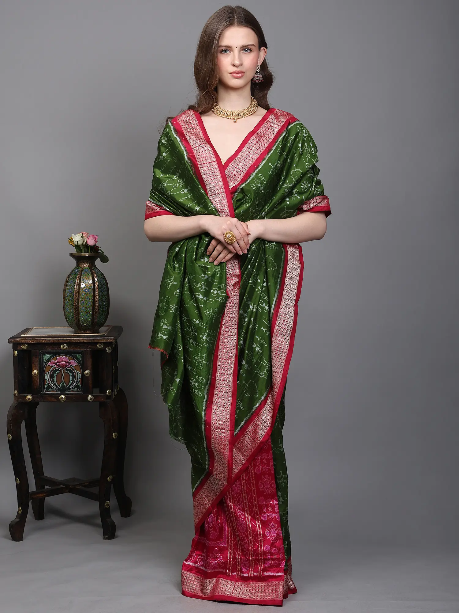 Green Art Silk Patola Pattern Banarasi Half Saree Style Lehenga Choli with Dupatta