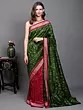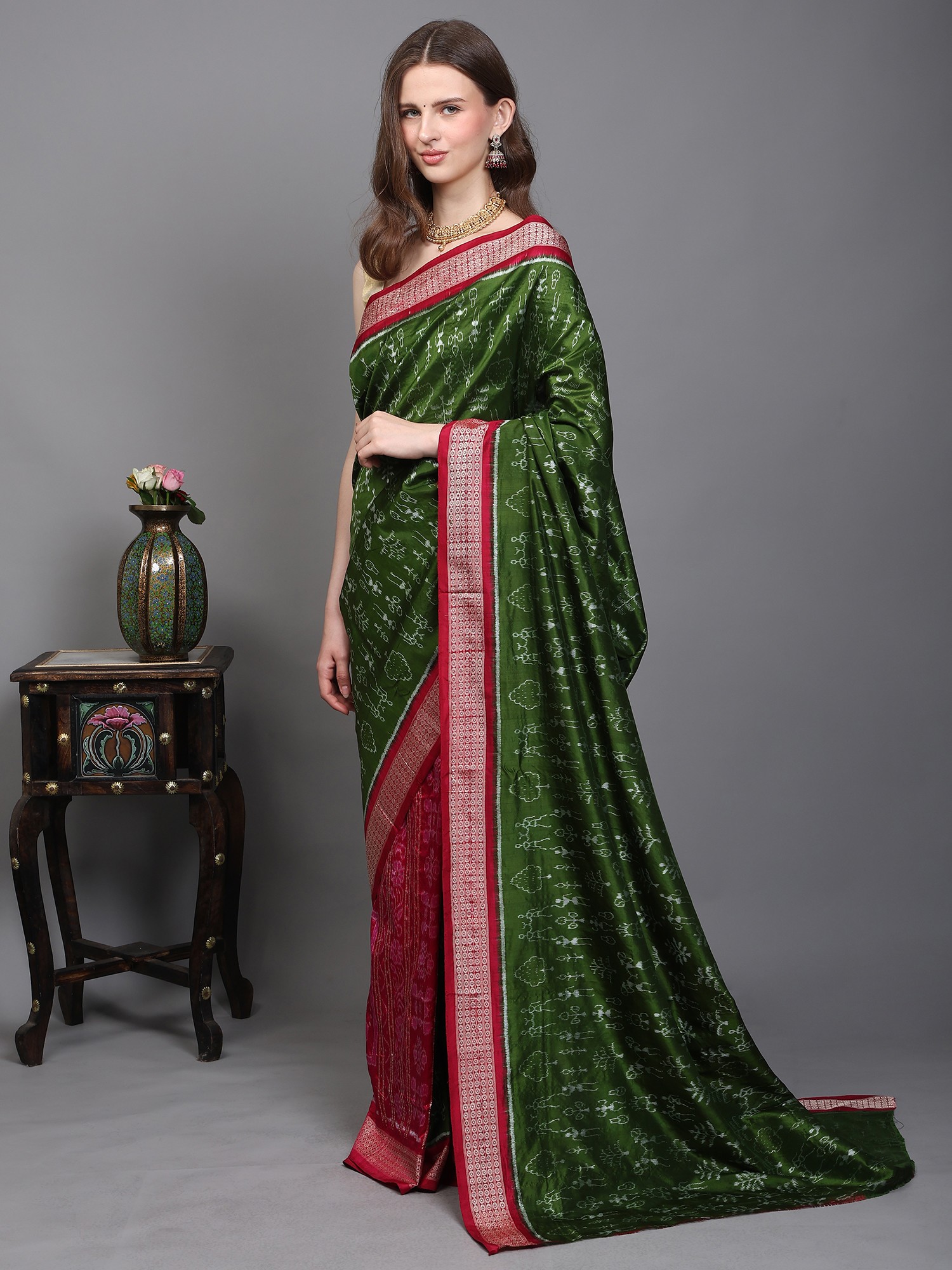 Green-Flash Pure Silk Ikat Handloom Saree from Pochampally with Wide Contrast Border