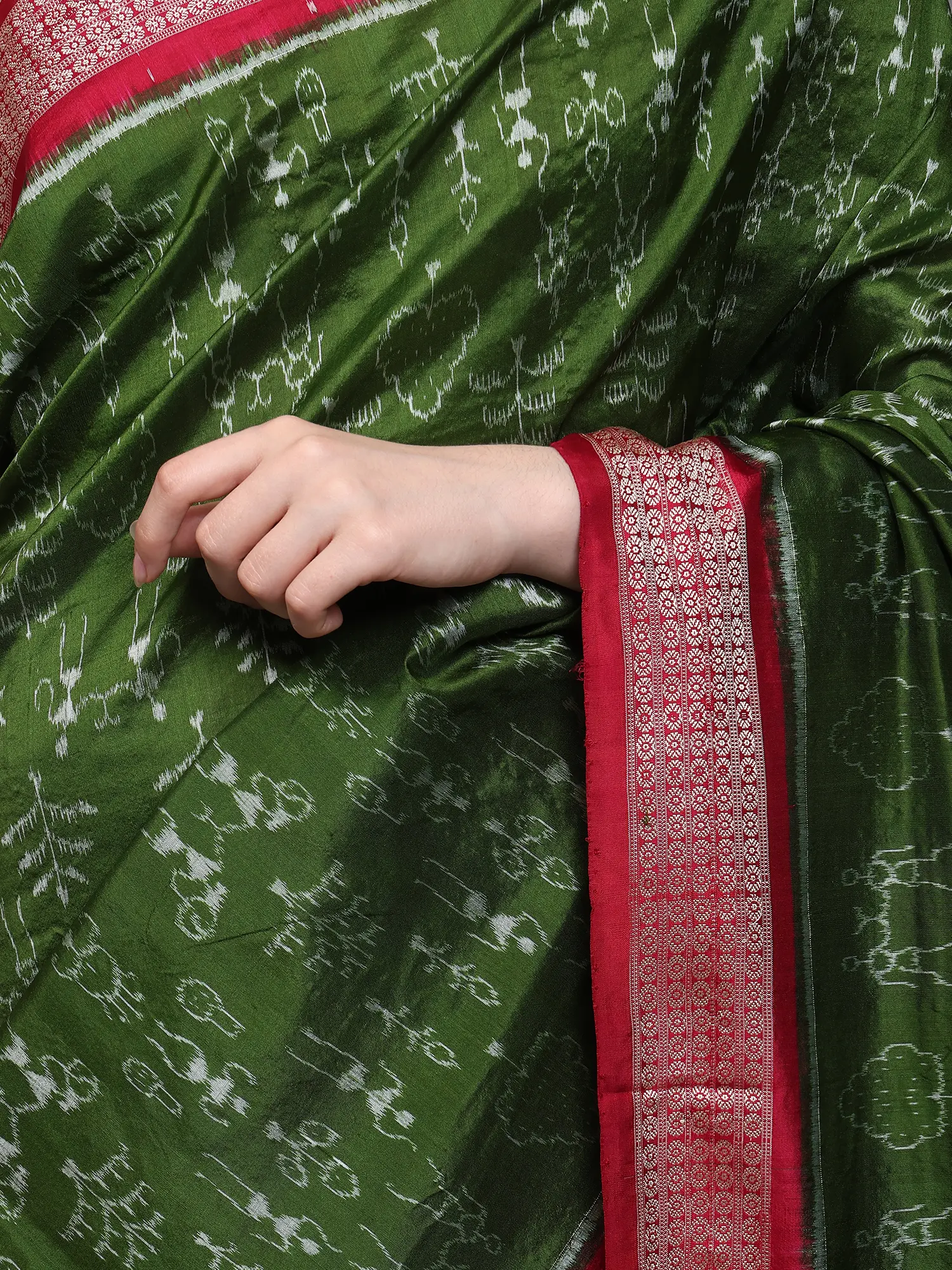 Pure Silk Patan Patola Handloom Saree from Gujarat with Ikat Weave and Contrast Red
