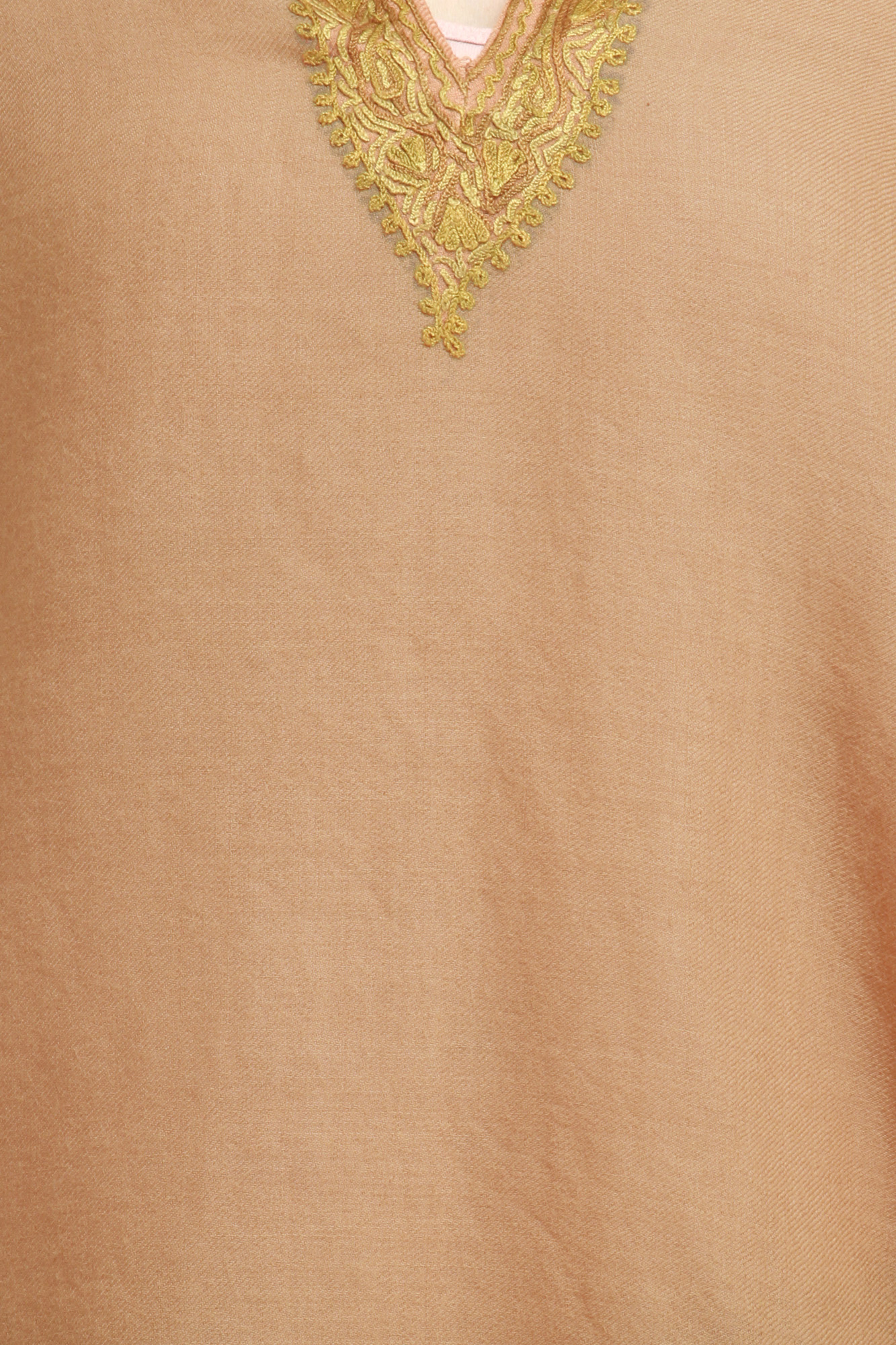 Pure Wool Phiran with Aari Embroidered Paisleys and Floral Leaf Stripe on Neck from Kashmir
