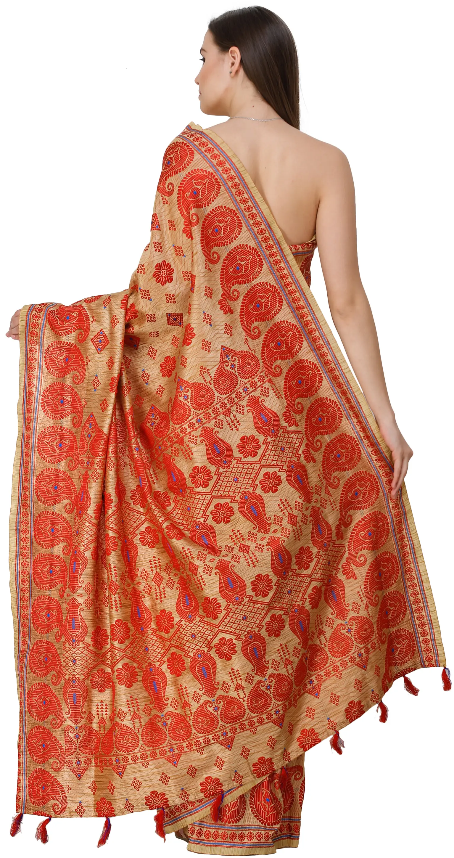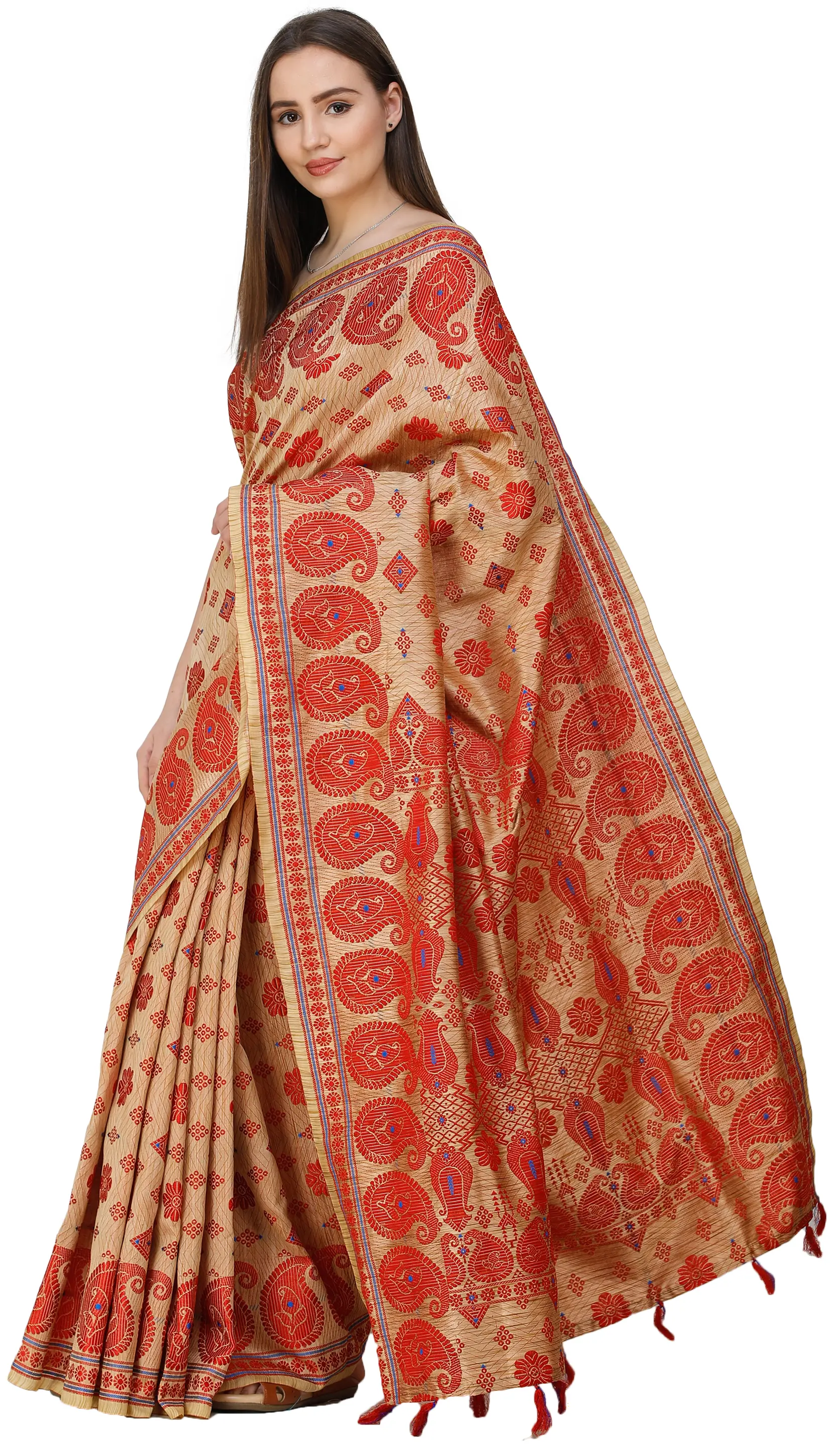 Hazelnut Sari from Assam with Woven Motifs on Anchal