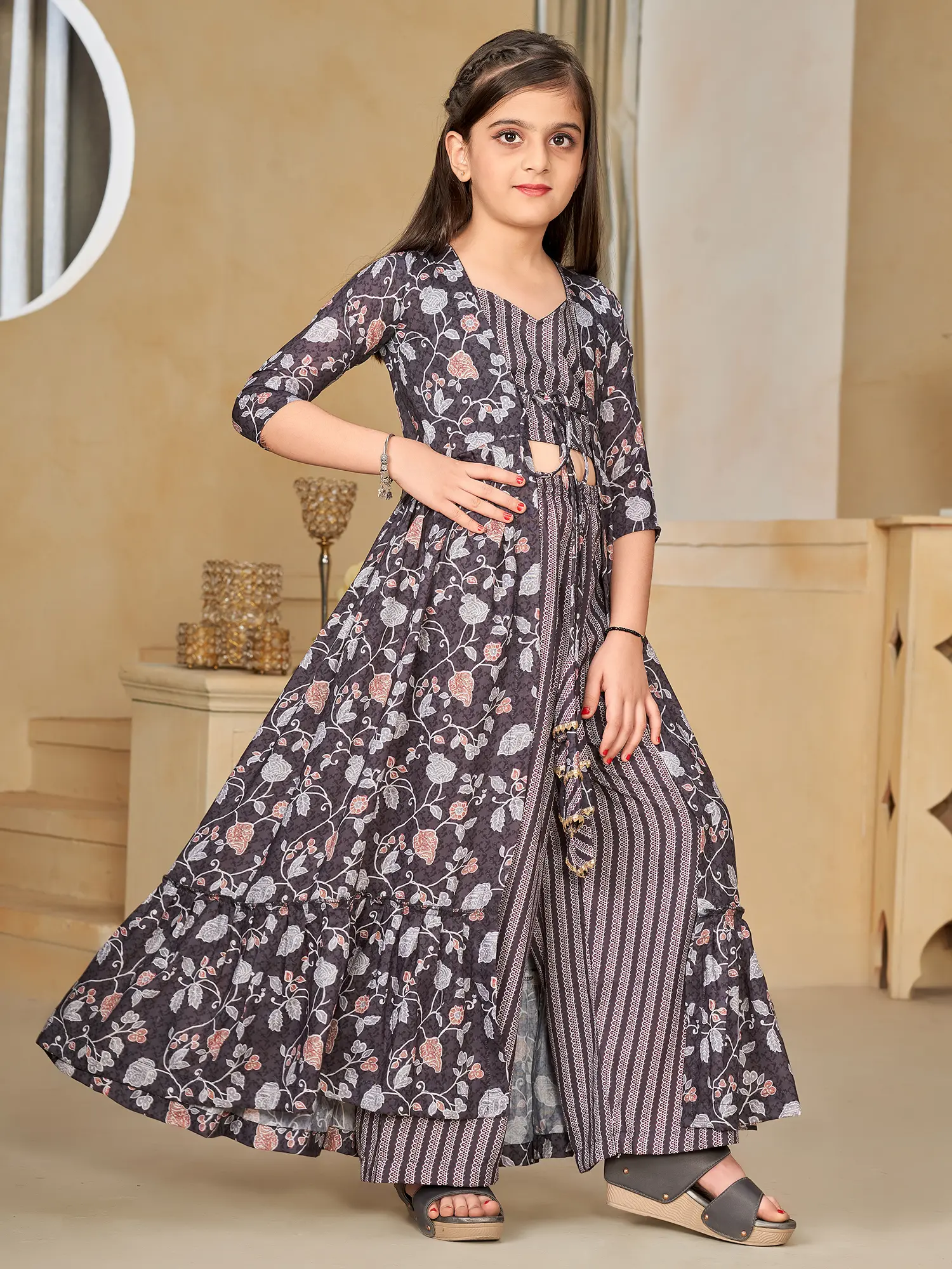 Digital Print Full Sleeve Festive Wear Faux Georgette Designer Gown For Girls