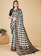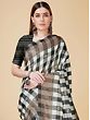 Strike a balance of tradition and modern chic with the Women's Check-Design Ethnic Cotton Silk Saree. A symphony in black and white, the checks create a mesmerizing play of symmetry. Look closer, and discover the elegance of the Mayura, the sacred peacock, adorning the body.
