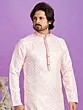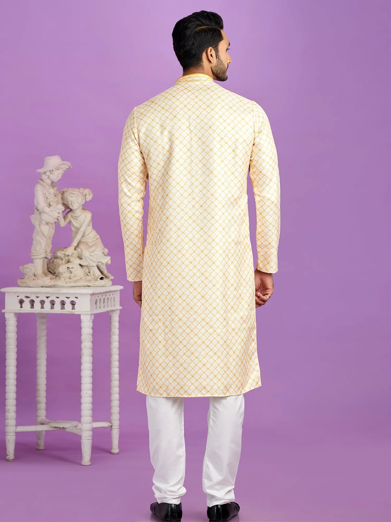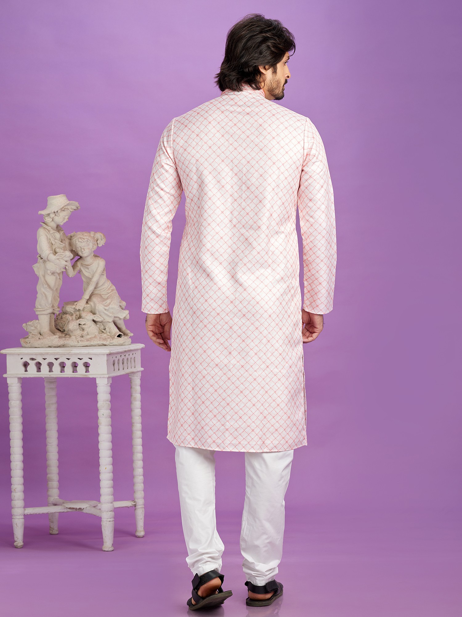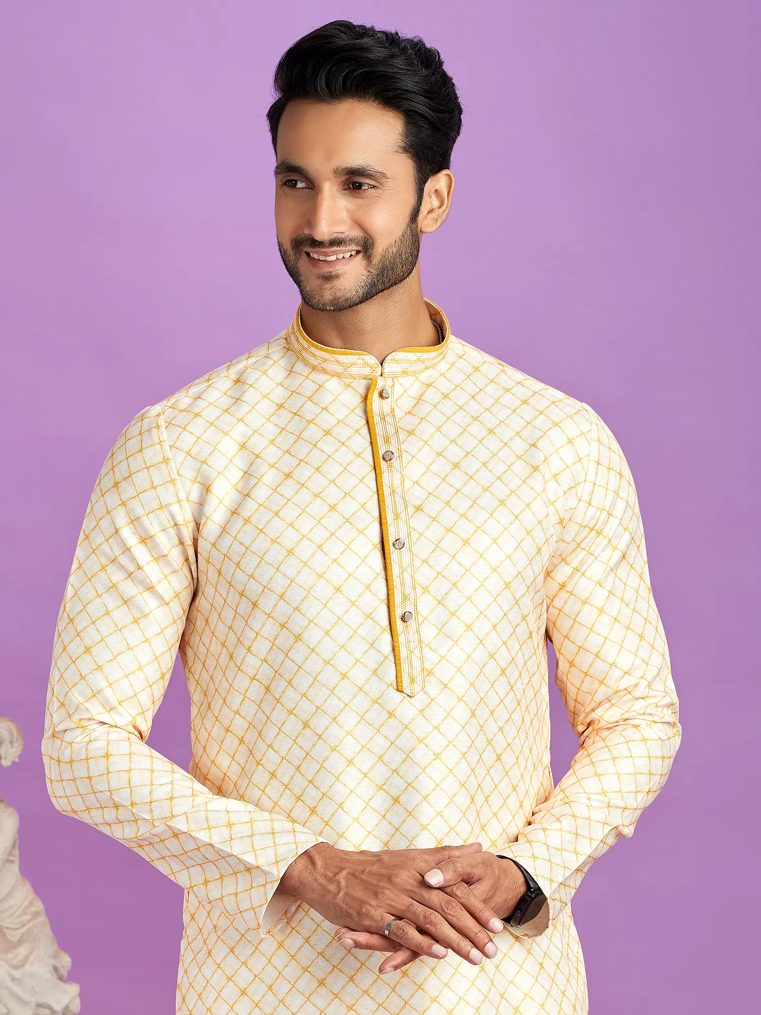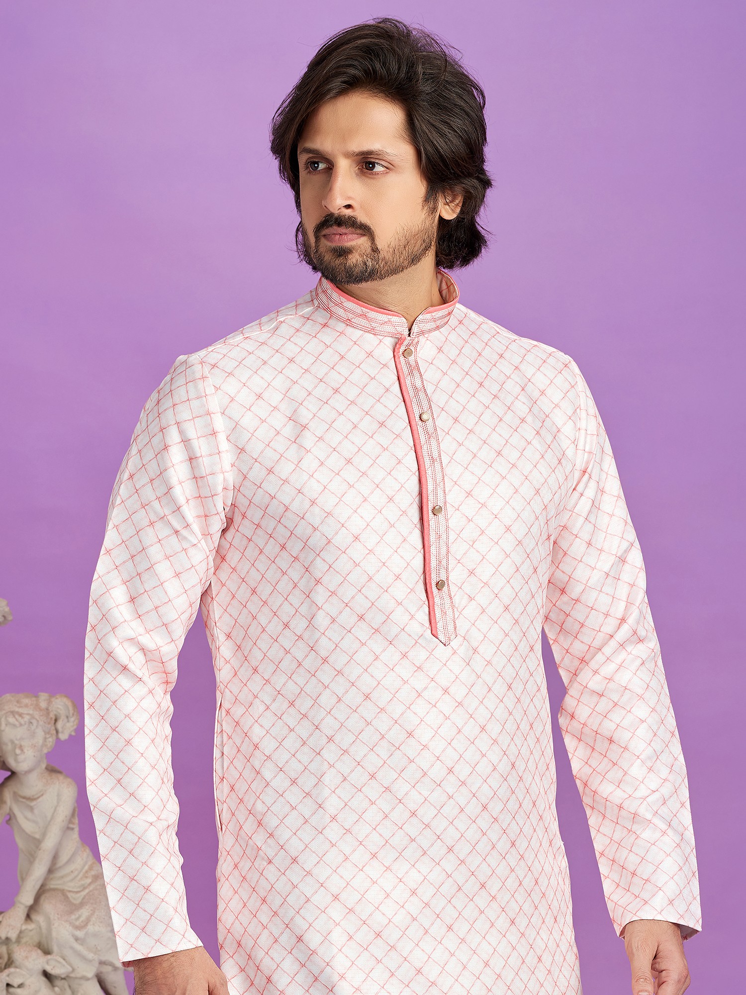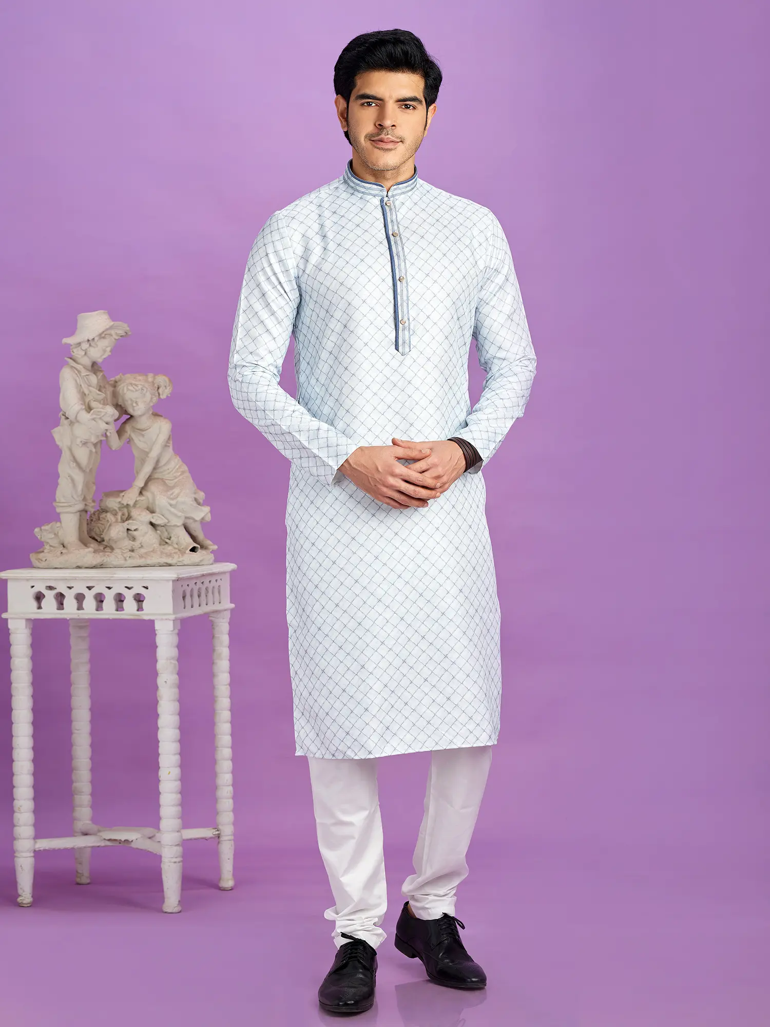 White and Black Check Kurta Pajama with Sequins and Embroidery in Self