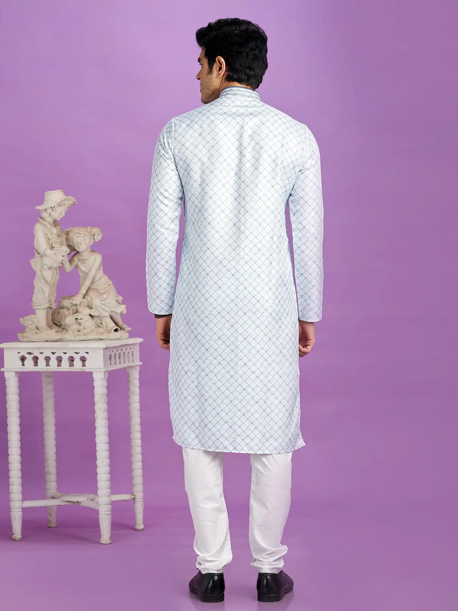 Airy-Blue Casual Kurta Pajama Set with Woven Graph Checks