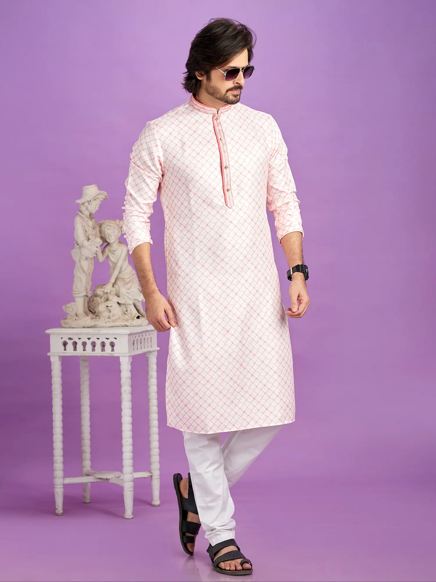 Casual Kurta Pajama Set with Zero Checks in Weave