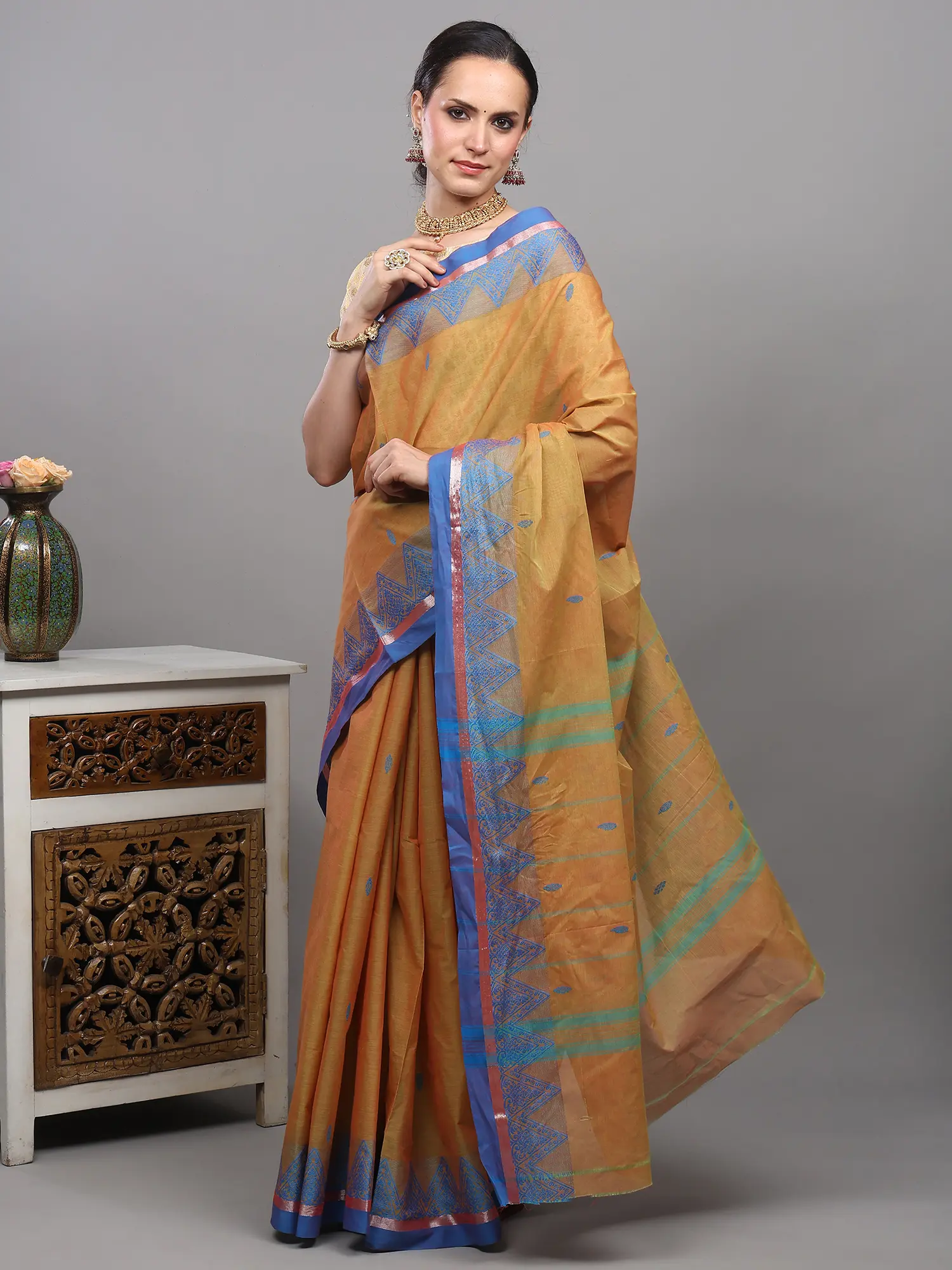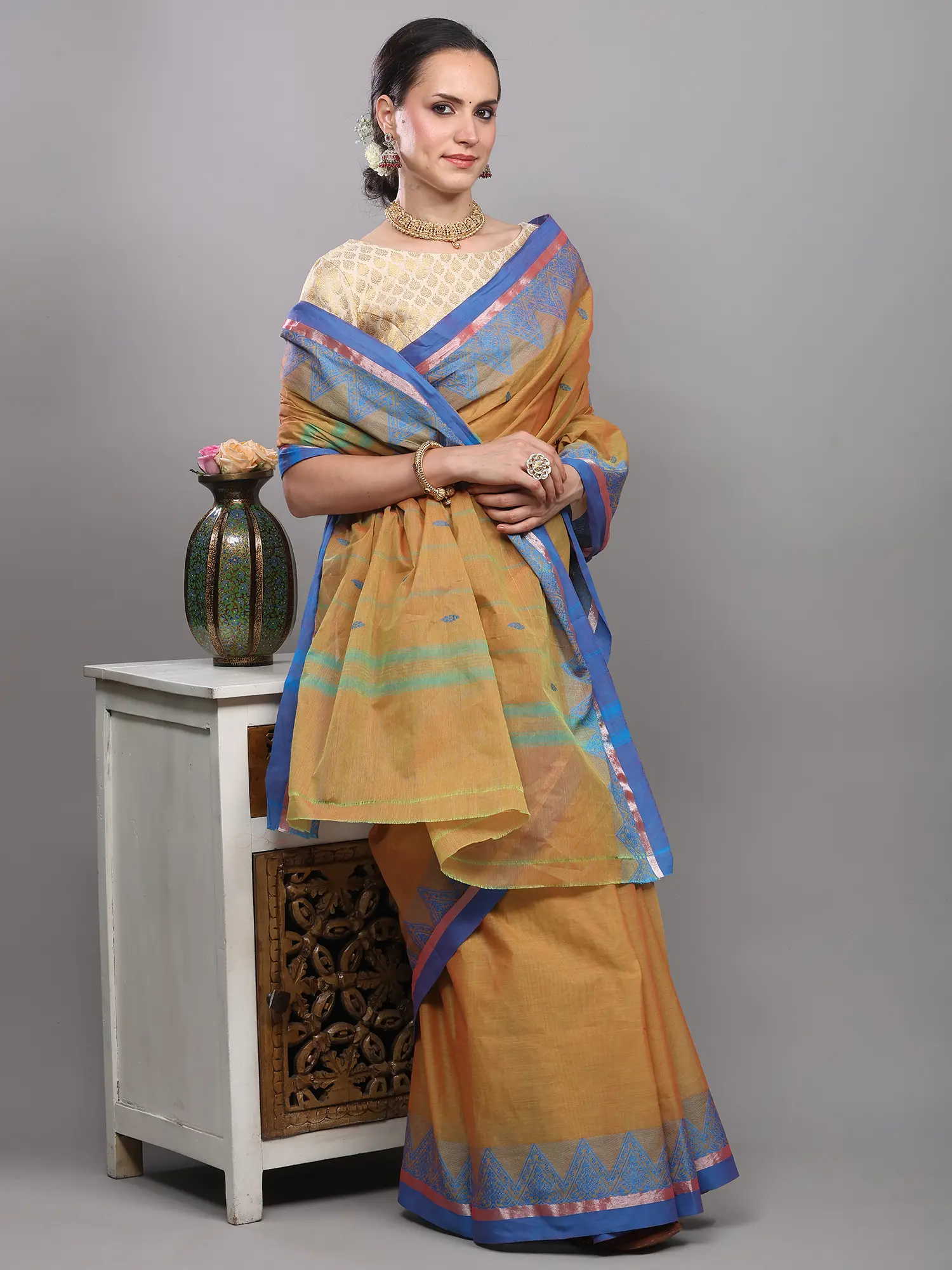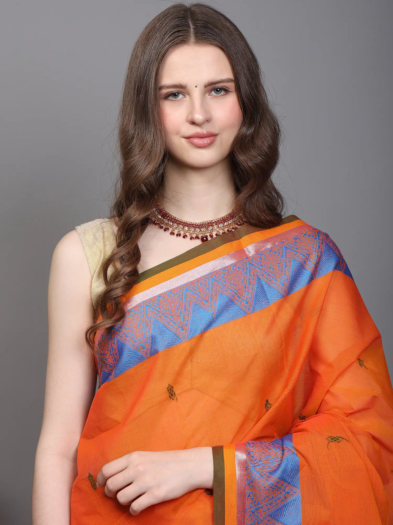 Burnt-Brick Pure Cotton Buddha with Fauna-Flora Printed Kalamkari Saree and Zari Border