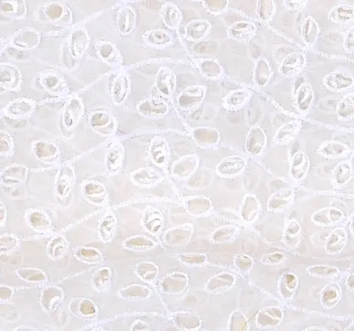The pristine white hue of this fabric makes it a timeless classic, offering a canvas of pure elegance. It’s a color that signifies purity, innocence, and refined taste, making it suitable for a wide array of styles and occasions. The delicate embroidery enhances this classic appeal, adding a touch of intricate beauty without being overpowering. Whether you're a seasoned professional or a passionate home sewer, this fabric promises to elevate your creations to new heights of sophistication and charm. Its delicate nature invites creativity, allowing you to transform it into pieces that are truly one-of-a-kind and imbued with your personal style.