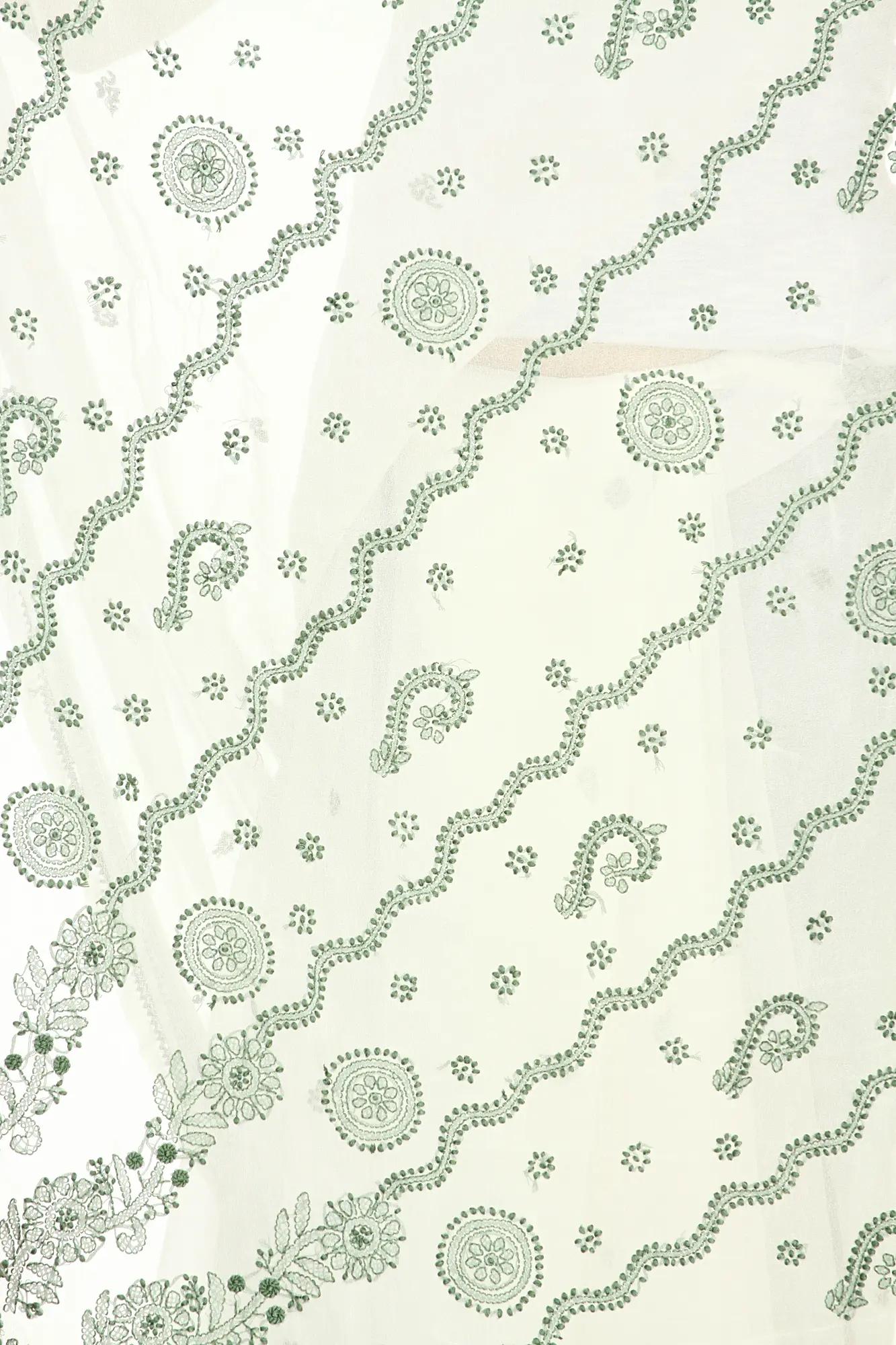 Willow-Green Saree from Lucknow with Golden Border and Chikan Hand-Embroidery