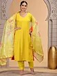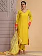 Yellow Satin Silk Salwar Suit for Women with Dupatta and Embroidered Thread Work
