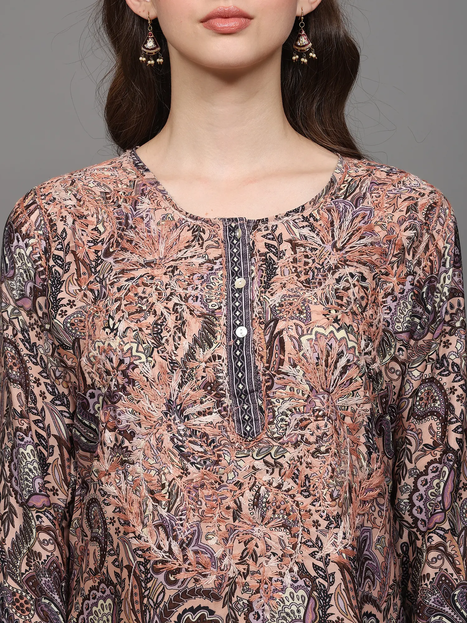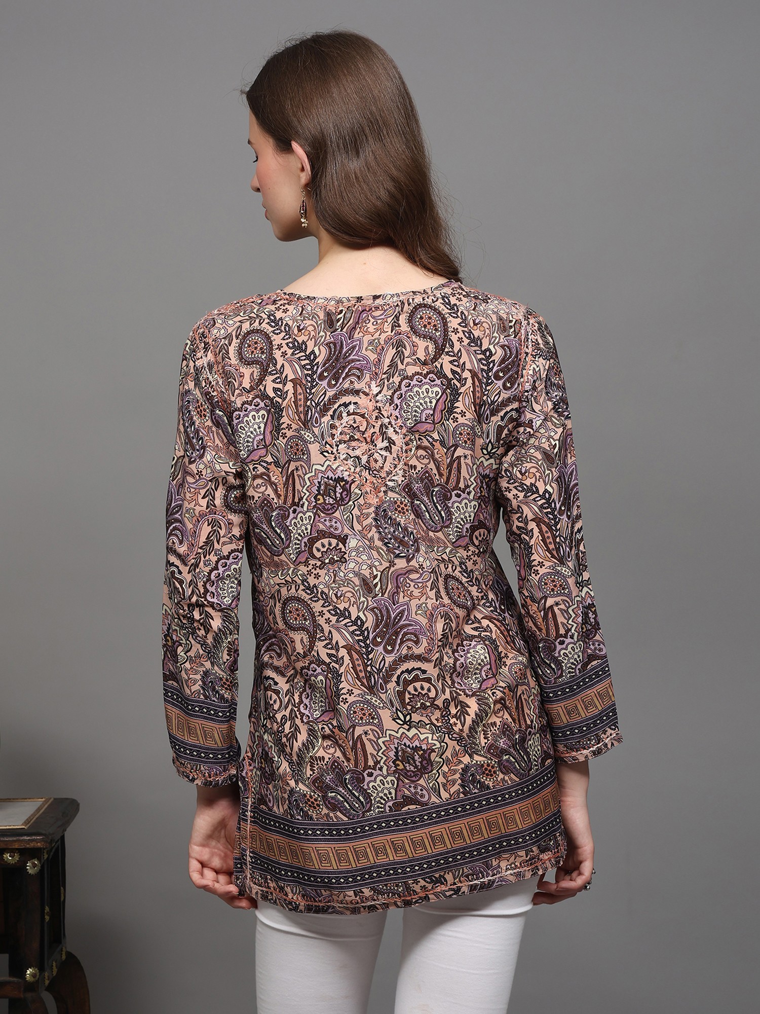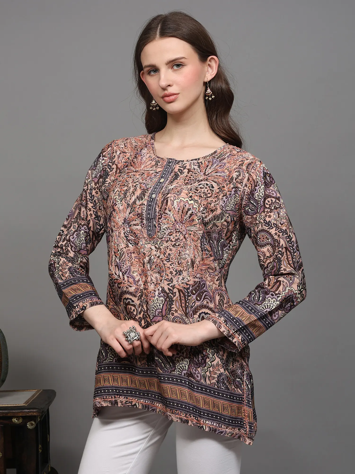Multicolor Printed Flowers Short Kurti with Embroidery on Neck