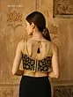 Made with a rich art silk fabric and embellished with ethnic motifs and a traditional touch of shimmering sequins, this choli from Gujarat is the perfect match for your sarees and lehengas. The beautiful black of the choli is embellished with sparkling threadwork, sequins, and beads, with a charming net element on the neckline that gives the blouse a rich allure.