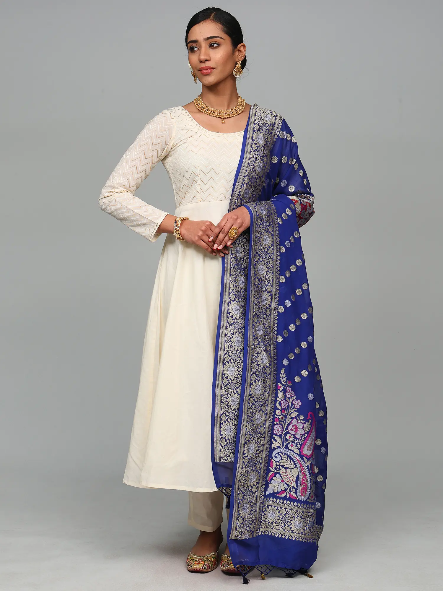 15" Goddess Brahmani With Four Arms Statue | Super White Makrana Marble