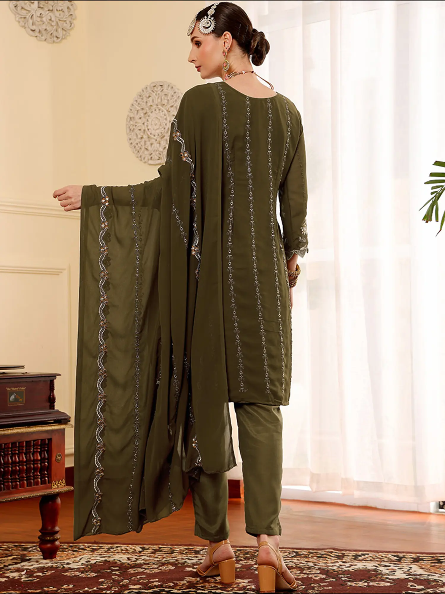 Green Palazzo Salwar Suit Chinon Ethnic Wear Designer Outfit For Festival Party Wedding Ceremony