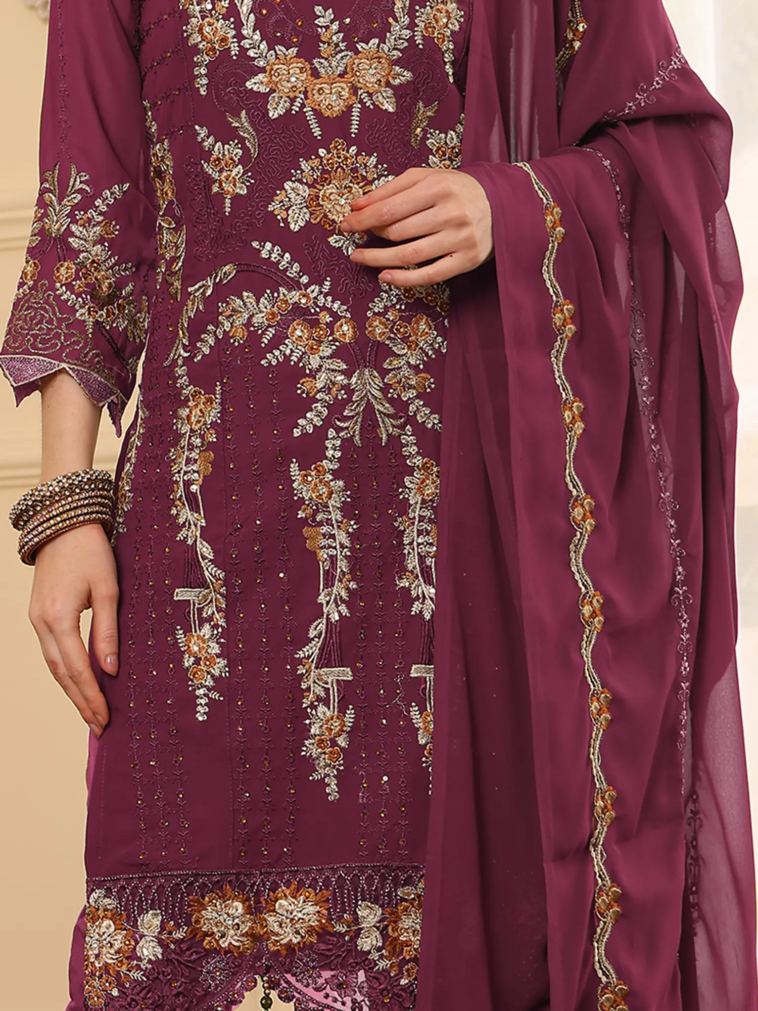 Embroidered Faux Georgette Salwar Suit With Trouser And Chiffon Dupatta For Women’s Fashionable Style