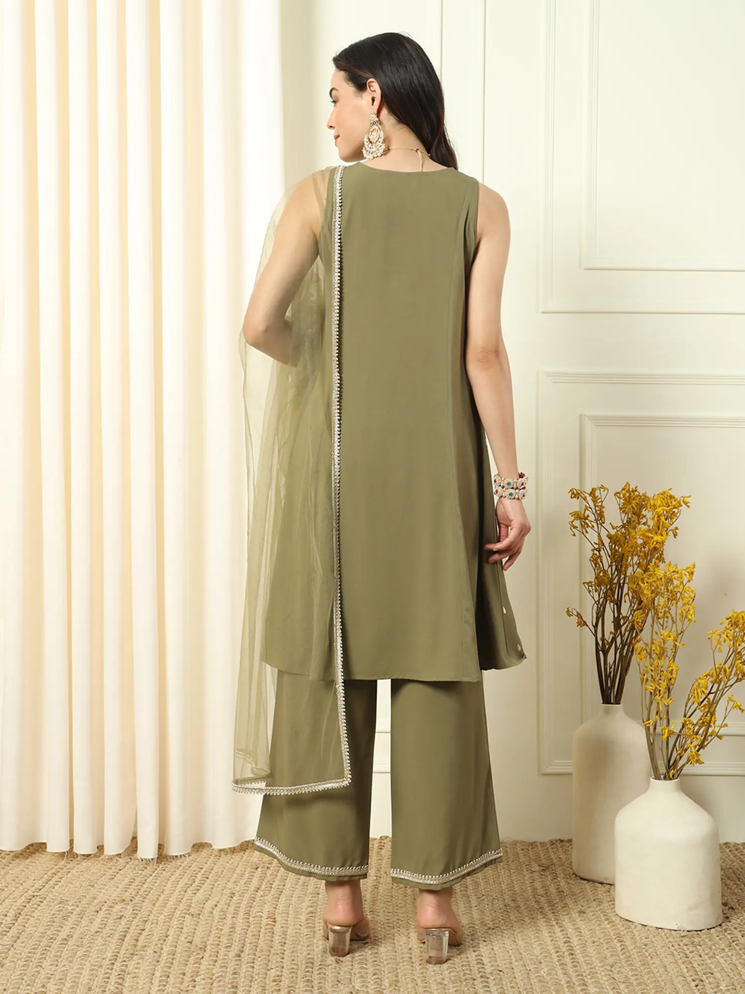 Black Faux Georgette Stunning Embroidery Work Round Neck Kurti Palazzo Set