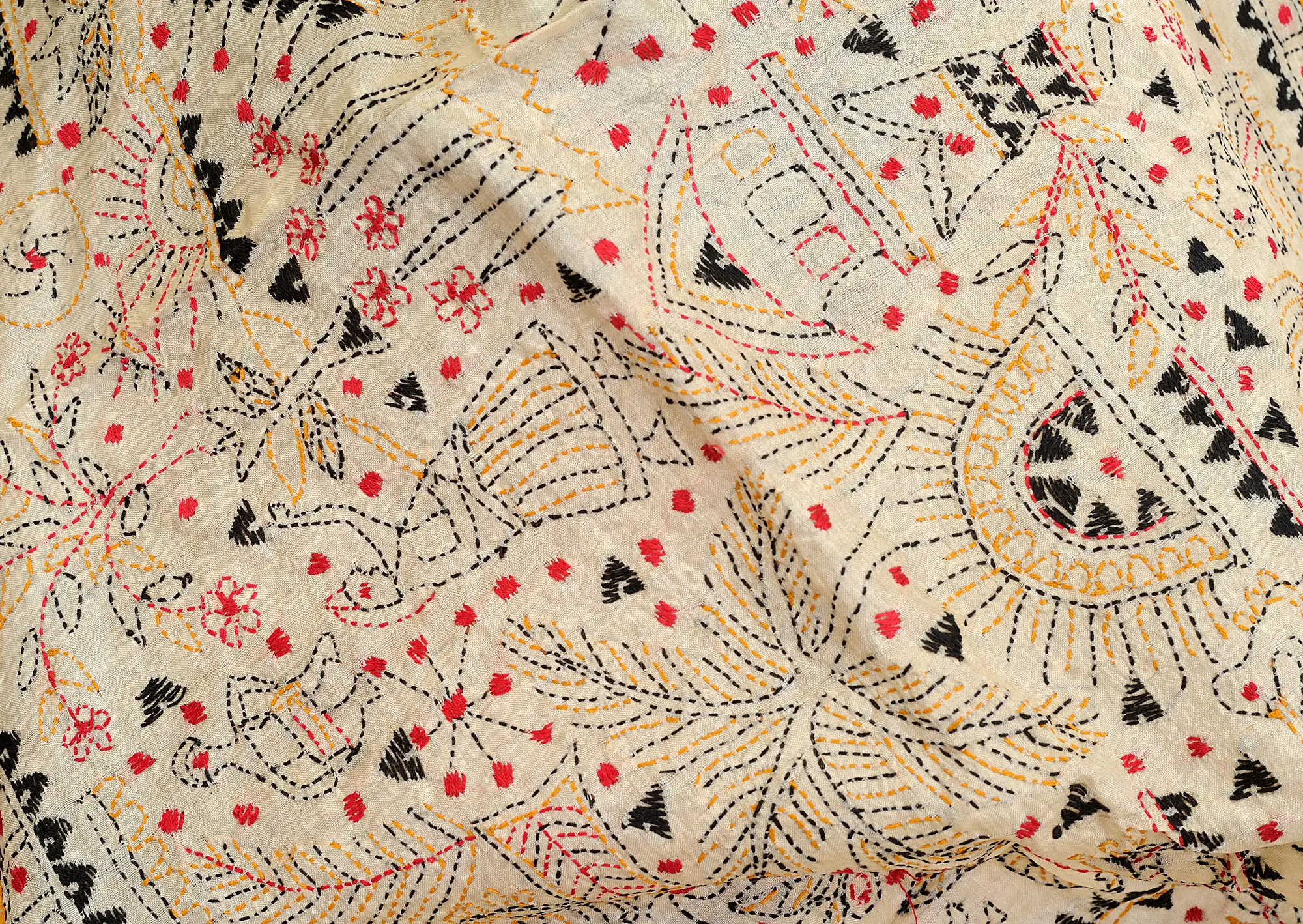 Multi-Color Patchwork Reversible Shawl from Kolkata with Kantha Stitch Embroidery All-Over