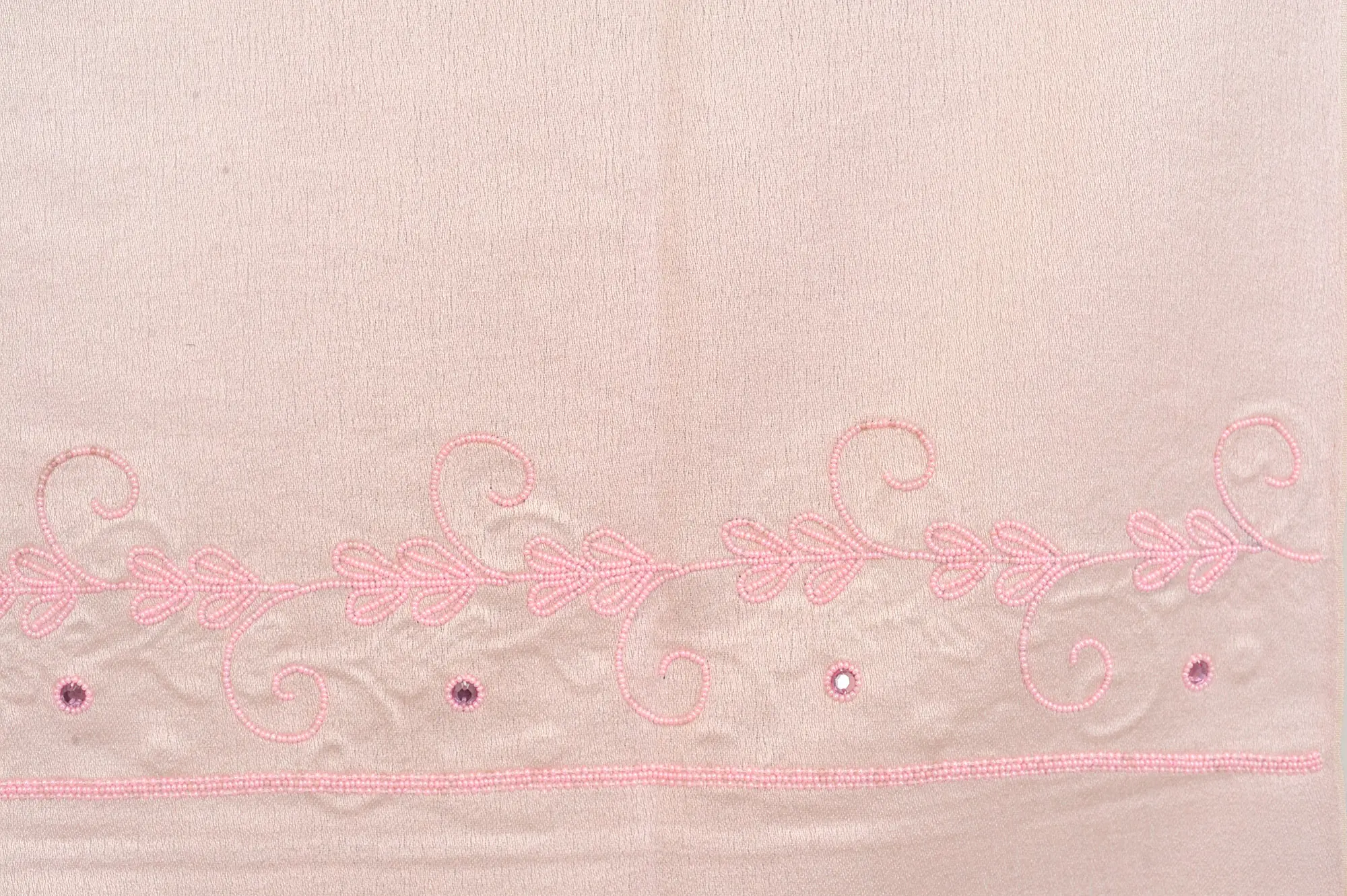 Cloud-Pink Cashmere Stole from Nepal with Embroidered Beads on Border