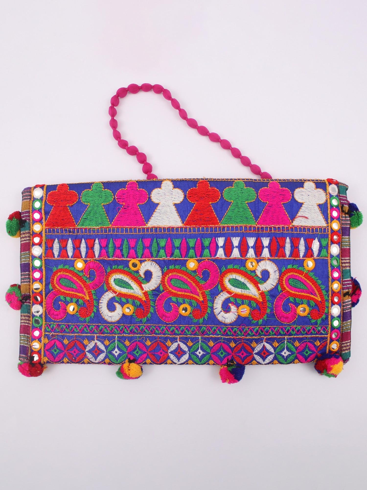Made from luxurious art silk, this clutch bag is the emblem of cultural richness and individuality. This work of art is perfect for soirees under the stars or intimate gatherings. It effortlessly merges tradition with contemporary allure.
