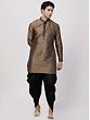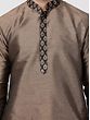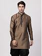 Crafted from a luxurious silk blend, this kurta exudes sophistication and refinement, perfect for both casual and formal occasions. Featuring a mid-length silhouette and classic Pathani style detailing, this kurta offers a modern twist on traditional attire. The rich coca-mocha hue adds depth and richness to your ensemble, while the silk blend fabric ensures comfort and ease of movement throughout the day.