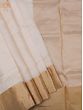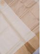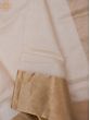 The Tussar silk Banarasi Saree has the textured feel of tussar silk in this drape, which is kept pristine with the white hue of the field.