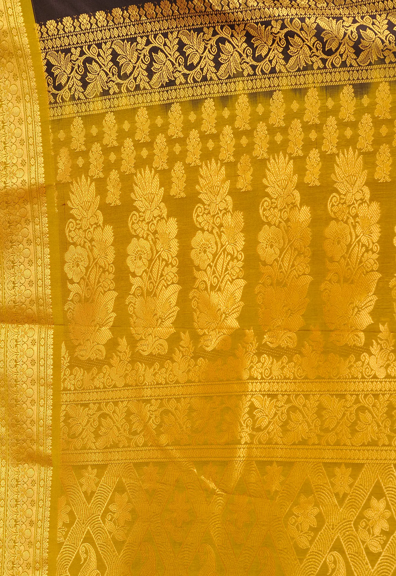 Coffee-Bean and Golden Sari from Bangalore with Woven Paisleys and Brocaded Aanchal