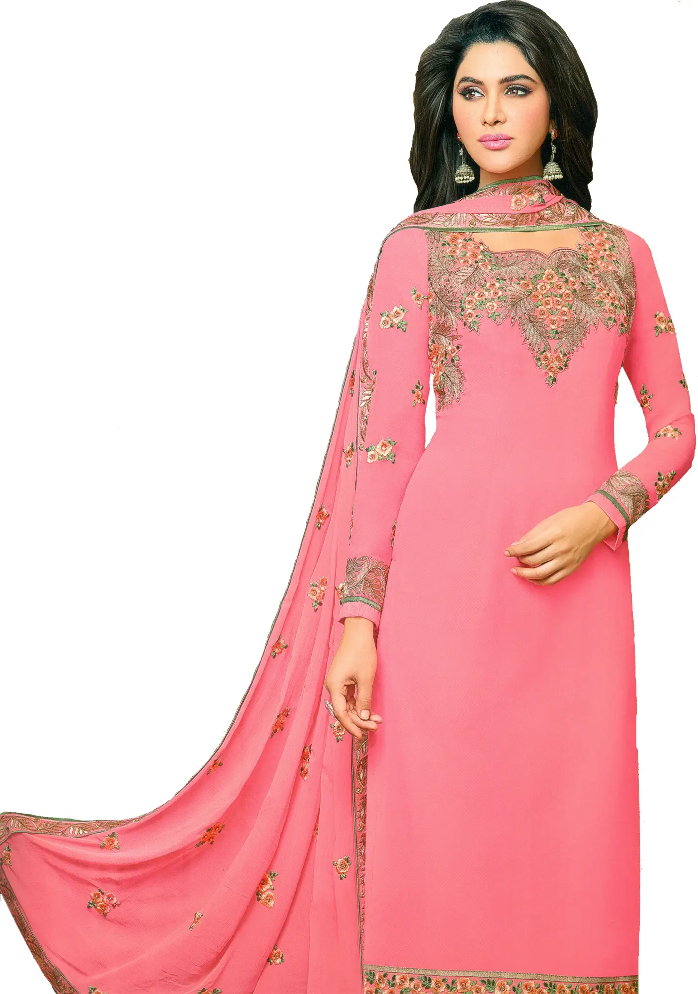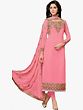 Discover unparalleled elegance with this stunning chudidar kameez suit, rendered in a delicate conchshell pink. Crafted from luxurious georgette fabric, this ensemble promises a graceful drape and a comfortable feel, making it ideal for a variety of occasions, from festive gatherings to semi-formal events. The vibrant yet soft hue evokes a sense of serene beauty, perfect for the woman who appreciates subtle sophistication.