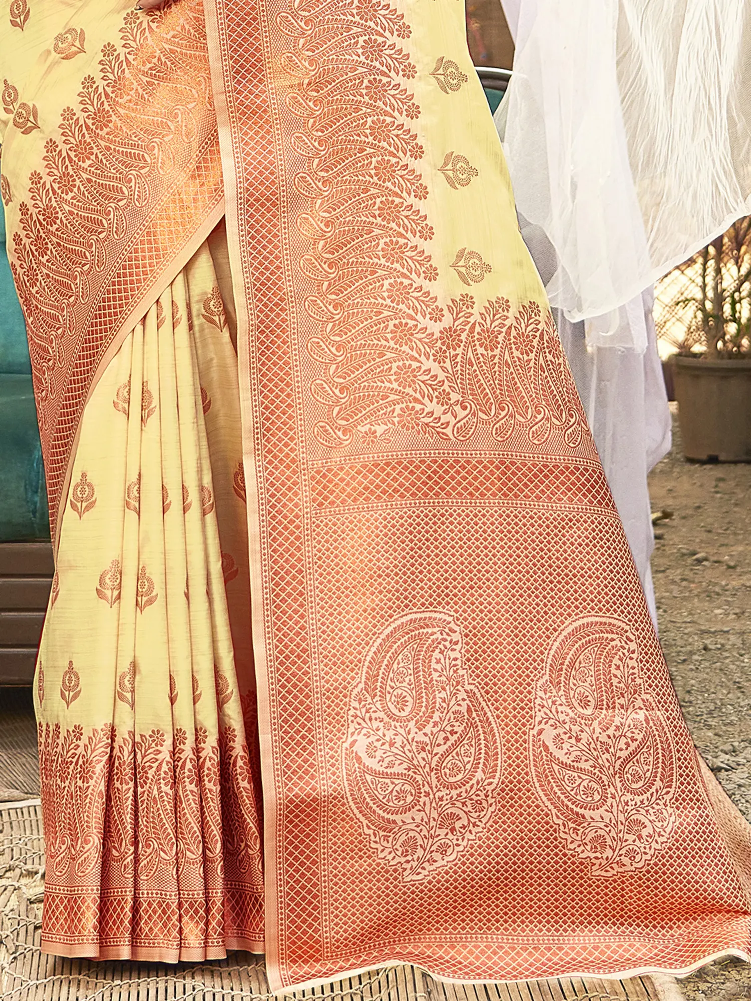 Experience the timeless allure of this meticulously crafted saree, a testament to the rich heritage of traditional weaving. This beautiful creation embodies sophistication and grace, designed to make a lasting impression at any special occasion. The luxurious silk fabric drapes beautifully, offering a comfortable and flattering fit that accentuates your natural elegance. The saree showcases intricate weaving work that reflects the skill and dedication of the artisans who brought it to life. The design is a celebration of classic motifs, arranged in a way that is both timeless and contemporary. The texture of the silk enhances the visual appeal, creating a captivating interplay of light and shadow with every movement. The attention to detail is evident in every thread, making this saree a true work of art.
