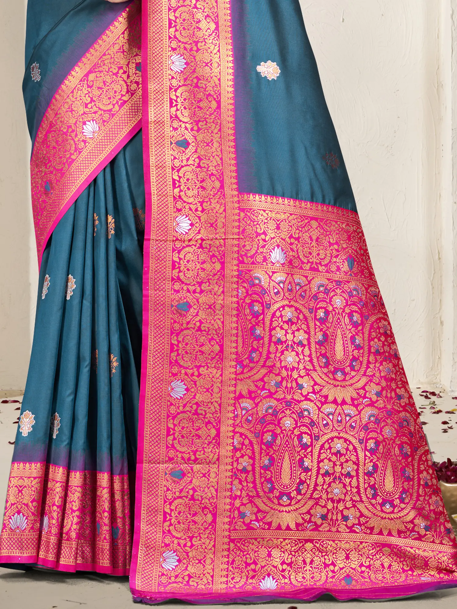 Desert-Flower Pure Silk Saree with Peacock-Temple Woven Contrast Wide Border from Bangalore