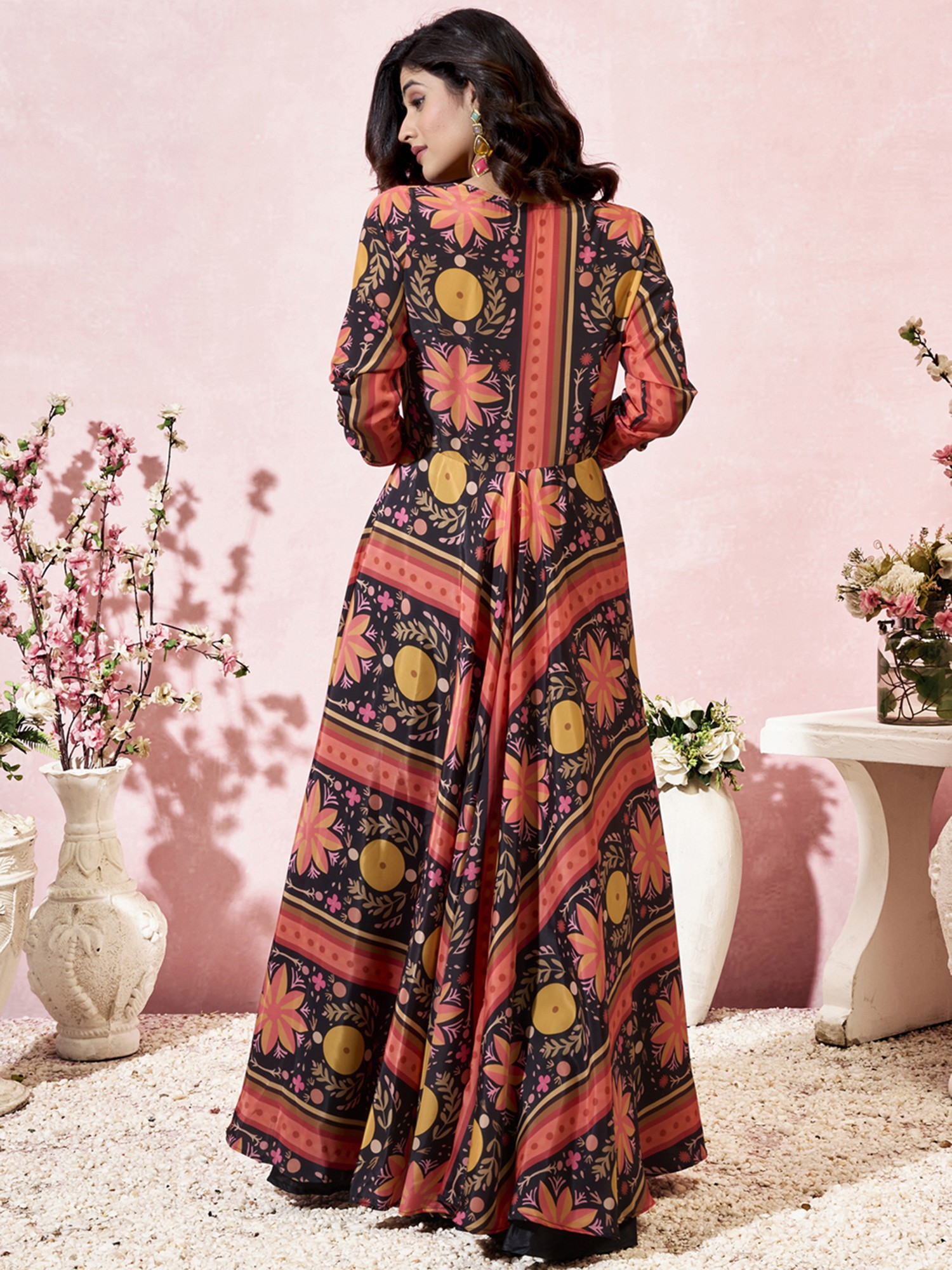 Multicolor Heavy Crepe Printed Attractive Party Wear Indo-western suit with long shrug