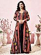 Warm-Pink Stylish heavy Crepe floral print three piece party wear indo-western suit with shrug