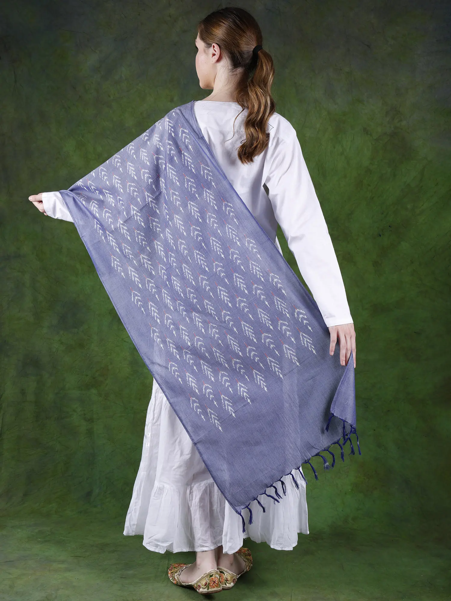 This Corsican blue pure cotton stole from Pochampally is a chic woven piece infused with the appeal of Ikat.