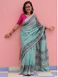 Hawaiian-Ocean Sari from Kolkata with Kantha Hand-Embroidery All-Over