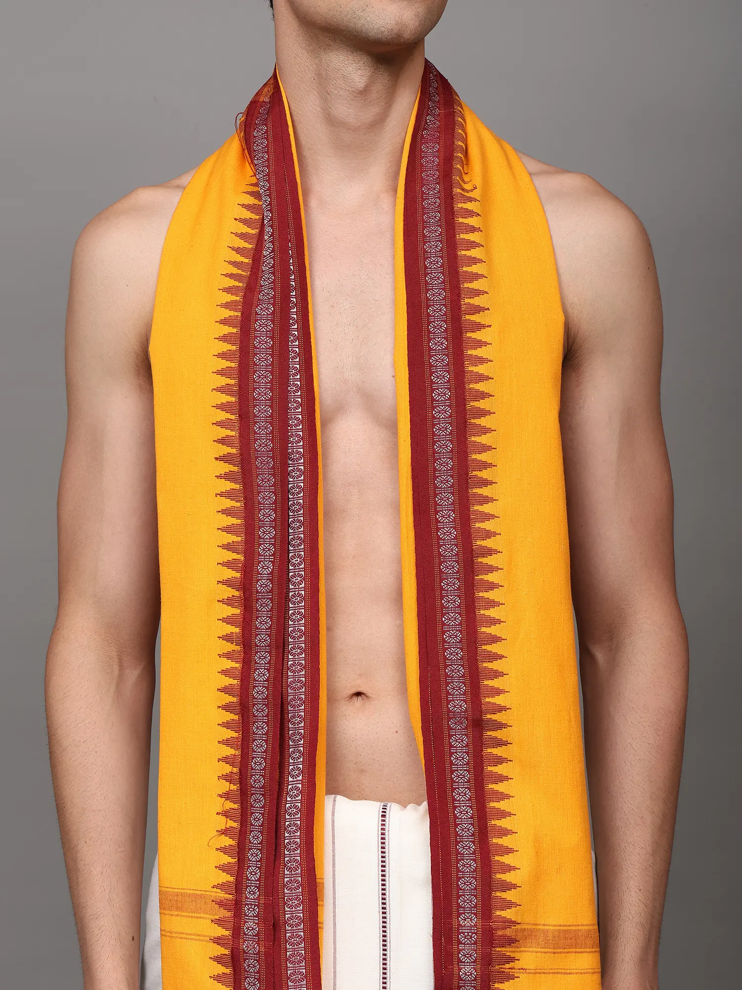 Ready to Wear Dhoti and Angavastram Set with Woven Temple Border