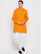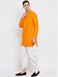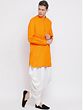 This Cotton Blend Pathani Style Mid-Length Curved Kurta paired seamlessly with a pristine White Dhoti is an intelligent choice for festive attire for men. Crafted for comfort and style, the kurta features a graceful curved hem and mid-length design, blending traditional charm with modern flair. The cotton blend ensures a soft touch against your skin, making it ideal for any occasion. Whether you're attending a festive celebration or a cultural gathering, this ensemble effortlessly captures the essence of cultural richness.