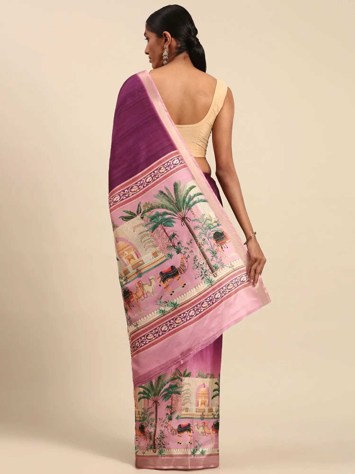 Contrast Broad Border Fancy Silk Party Wear Saree With Blouse