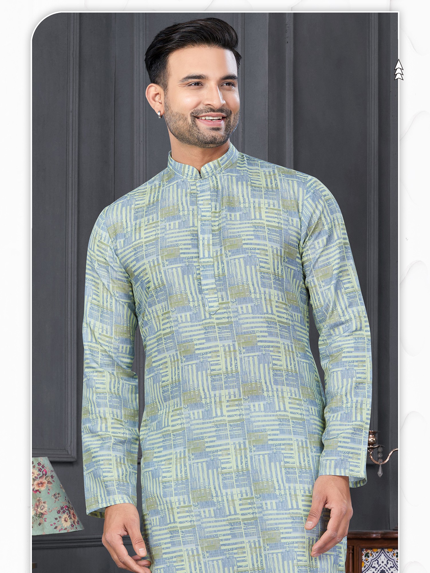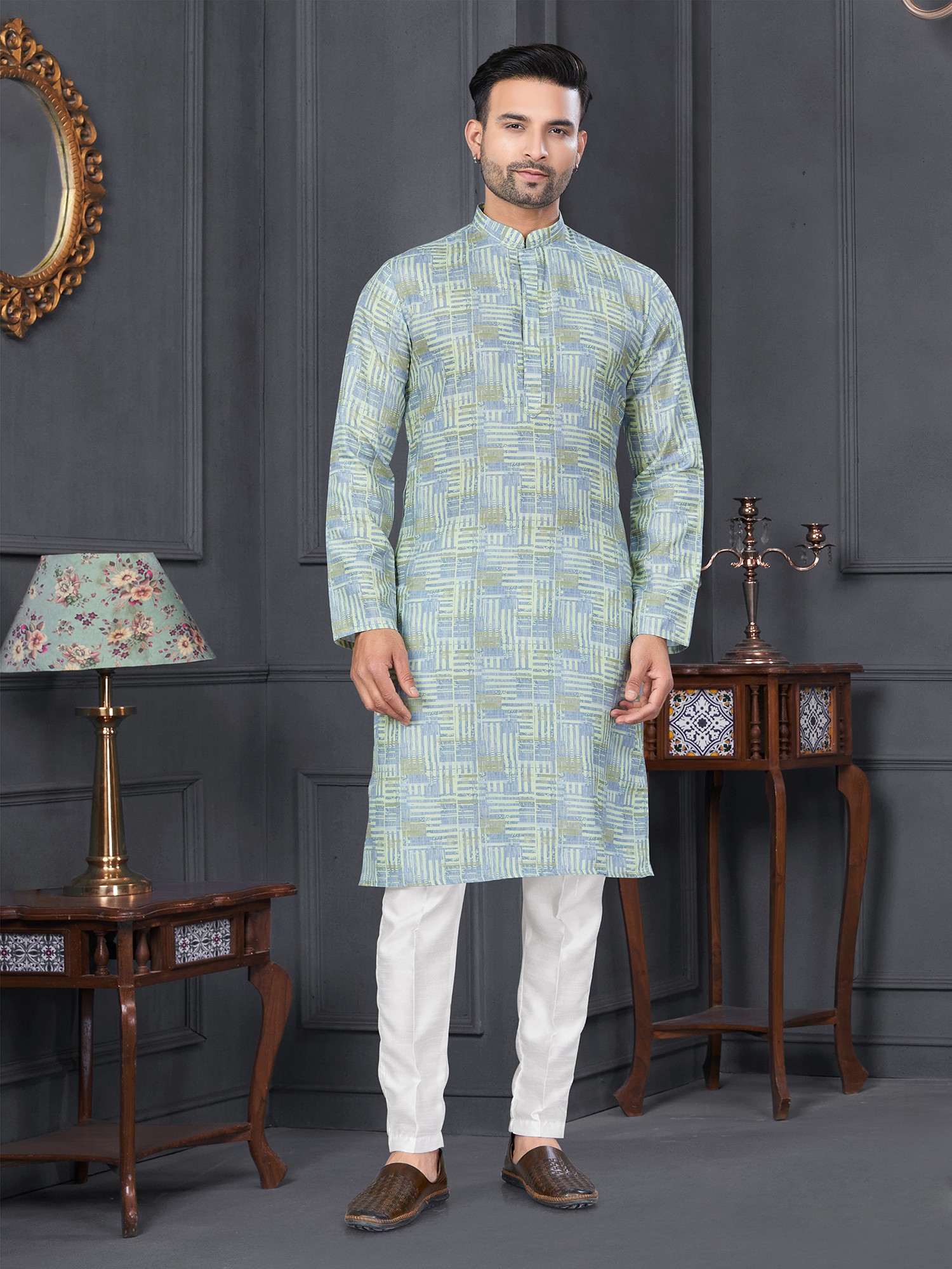 Pure Cotton Kurta Pajama with Thread Embroidery on Neck